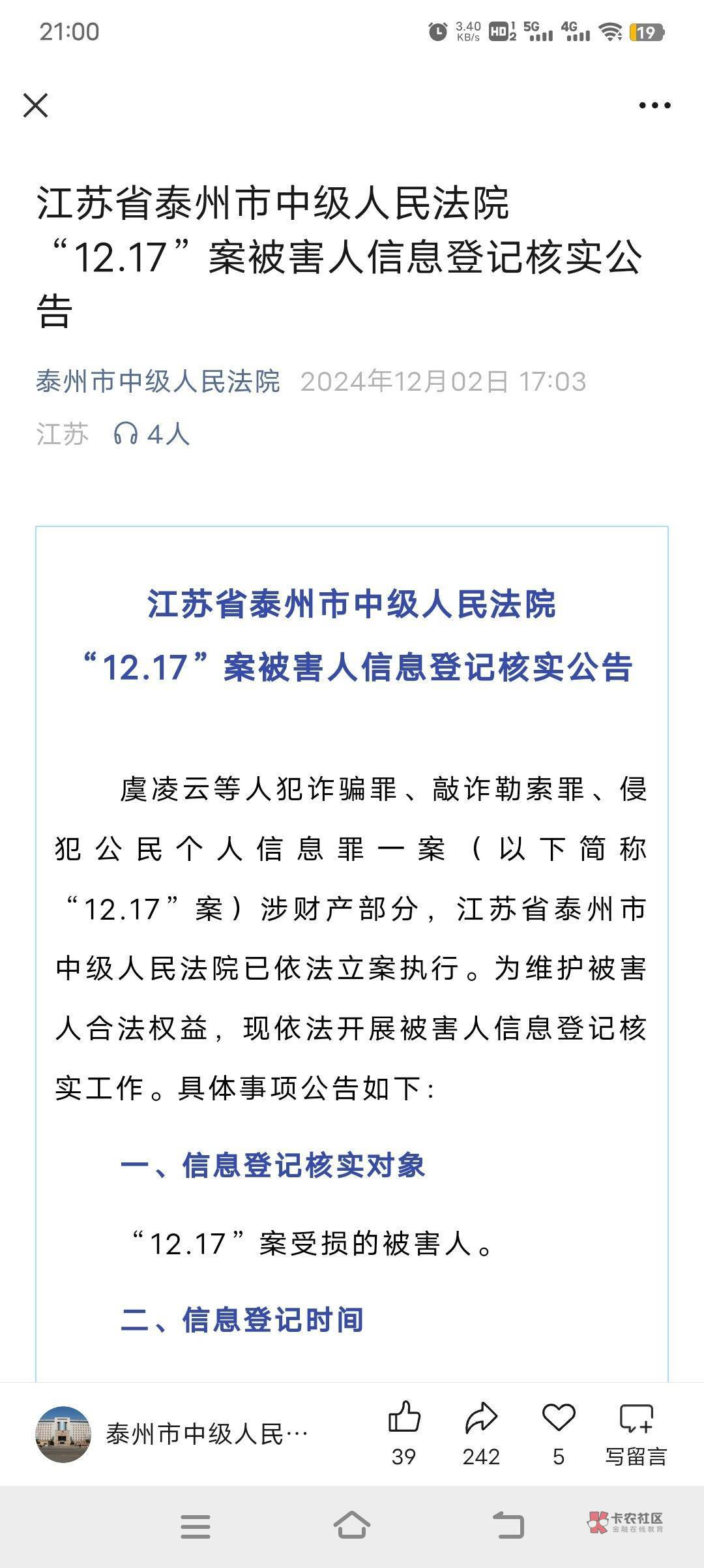第五,有很多老哥,一键核操作遇到各种各样的问题。大家去看泰州市中级人民法院公号,12月2日发的原公告。公告里面,有图文操作步骤。最下面,还有视频演示操作。看完视频操作演示,可以解决大部分问题。