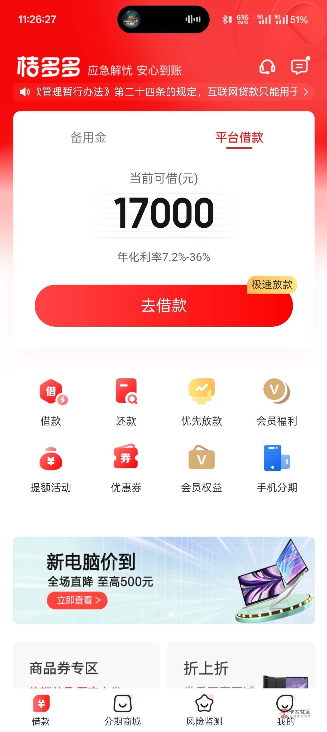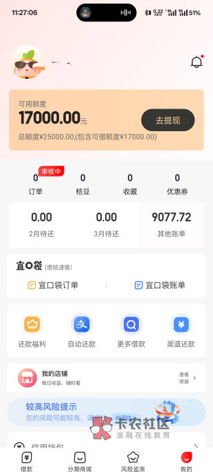 之前58合作桔多多借了八千,今天又给了一万七,不知道能不能借,但是根本不敢点,借一万七一年利息三千了,再点下去感觉自己真的是下海越来越深了,不知道自己是白了还是还款规律导致的,慢慢的给额度的平台也多了起来,前几天羊小咩也给了一万的购物额度,58还有4700不敢用,你我贷七千三不敢用,信用飞出了提额卡也不敢买,放心借还剩六百额度,真的是不敢点,反复算利息,感觉都太多了,超过了我的承受能力,辛辛苦苦的赚钱不想全部给了利息;害怕自己离上岸越来越远,现在一个月不包括信用卡已经将近五千的还款了,也怕自己会暴雷,希望自己可以挺过这一年彻底上岸,也祝各位老哥越来越好早日上岸,借款前尽量考虑一下自己的还款能力,不要无止境,没有还款能力逾期也是一个方法,不然一直滚下去只会压力越来越大,三思后行