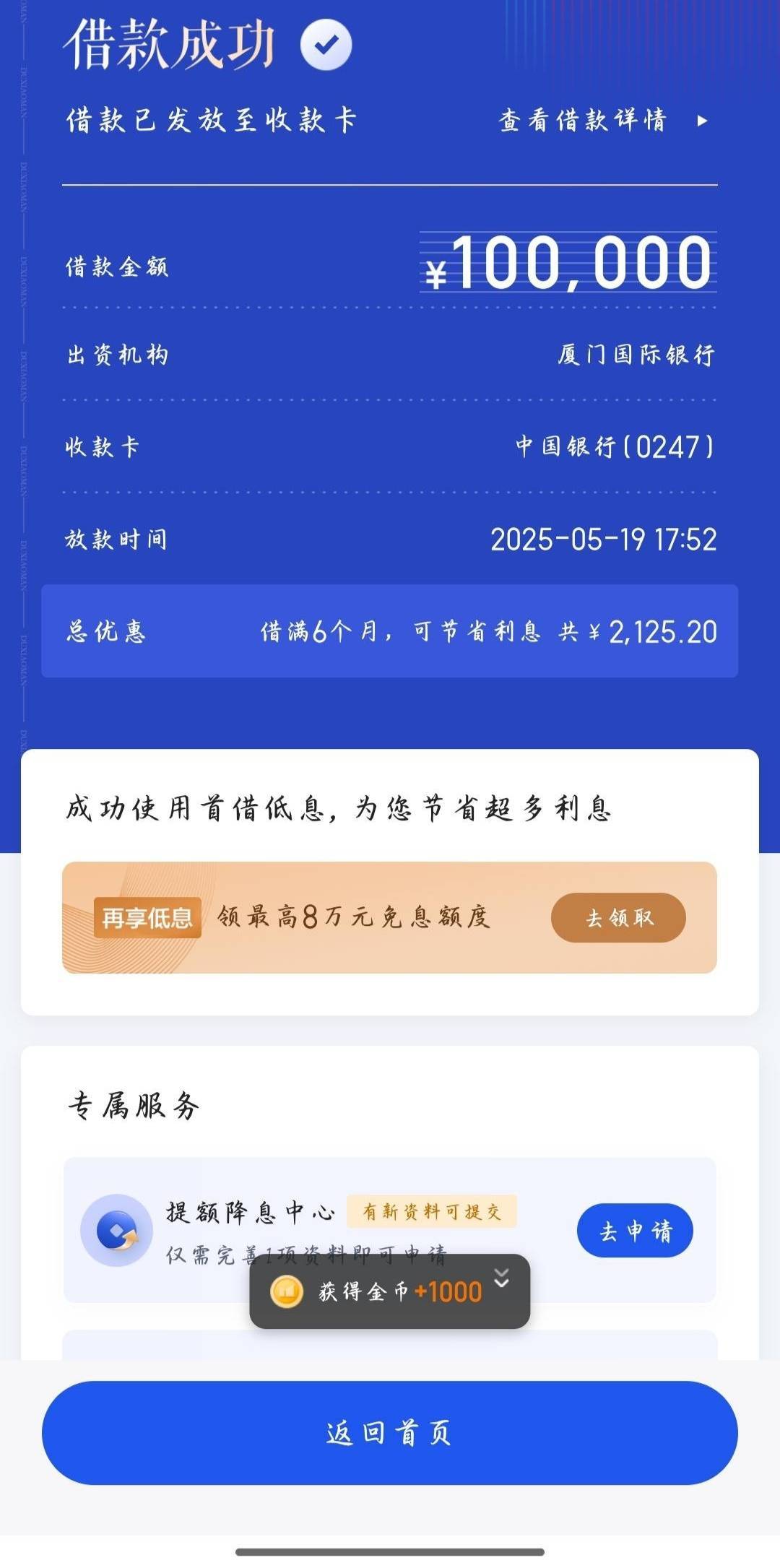 下款成功还给了优惠券
