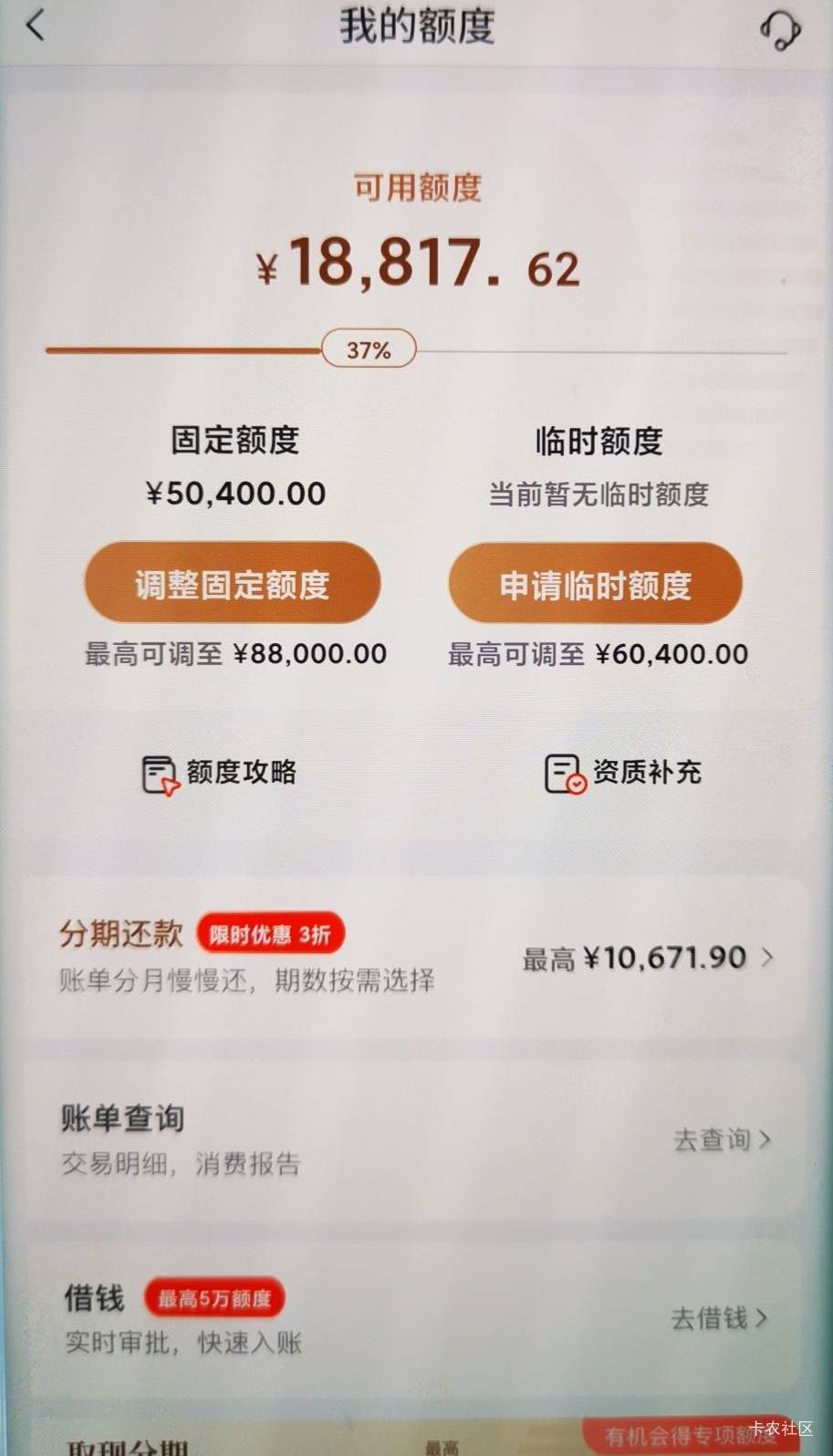 光大银行上次提升额度还是23年8月打电话邀约分期提升额度,这次5万-8.8万,跨度挺大,