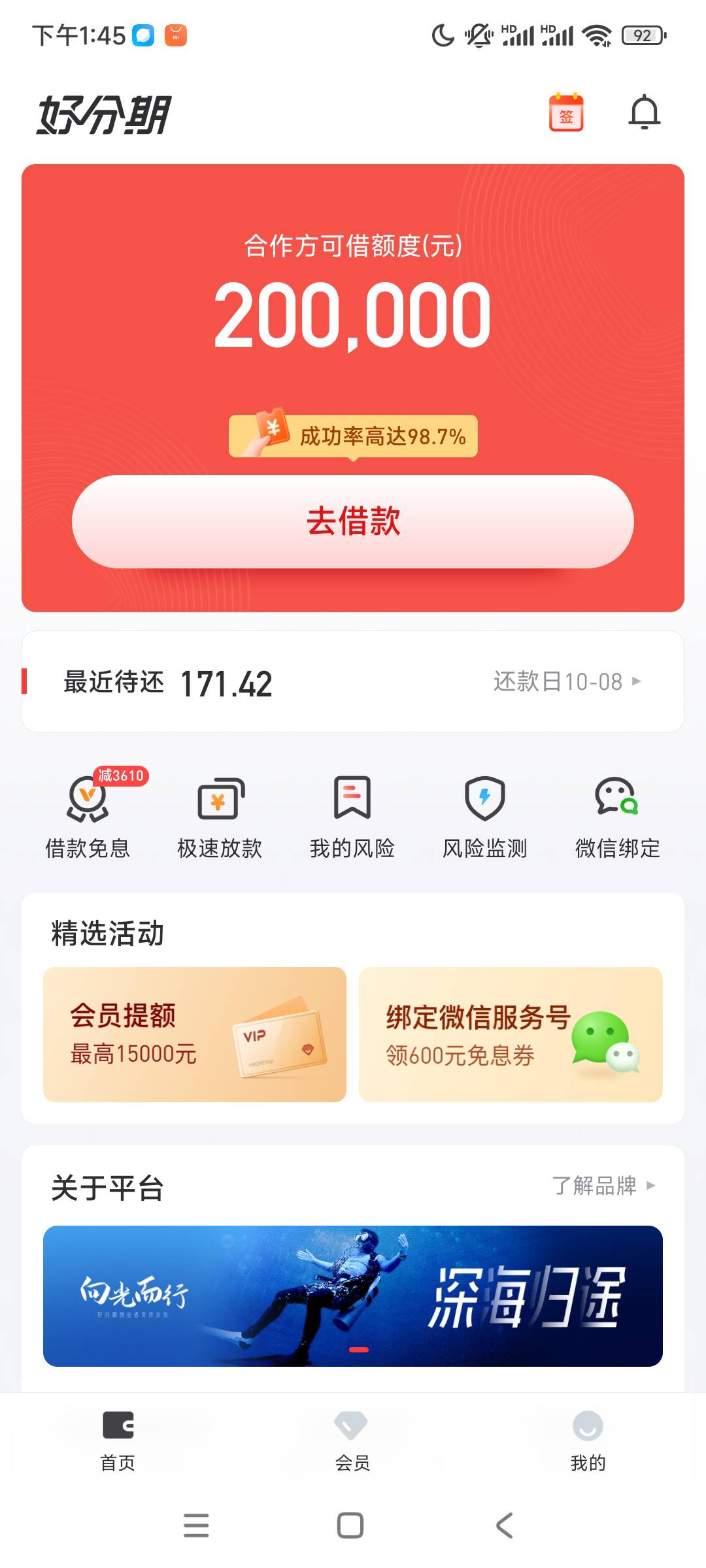 好分期复借,下款失败,然后额度没了,恶心了。