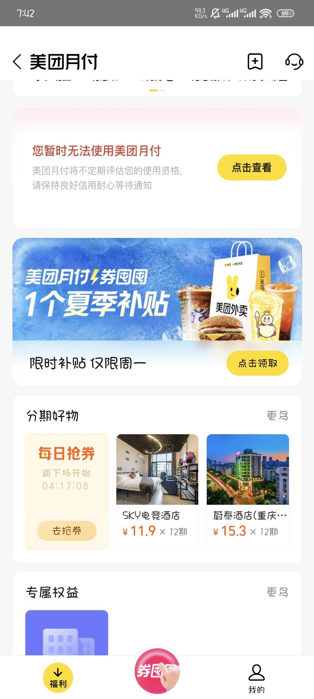 月付用了两个月怎么都不给用了,都是正常点外卖,好气分付半个月就能用了