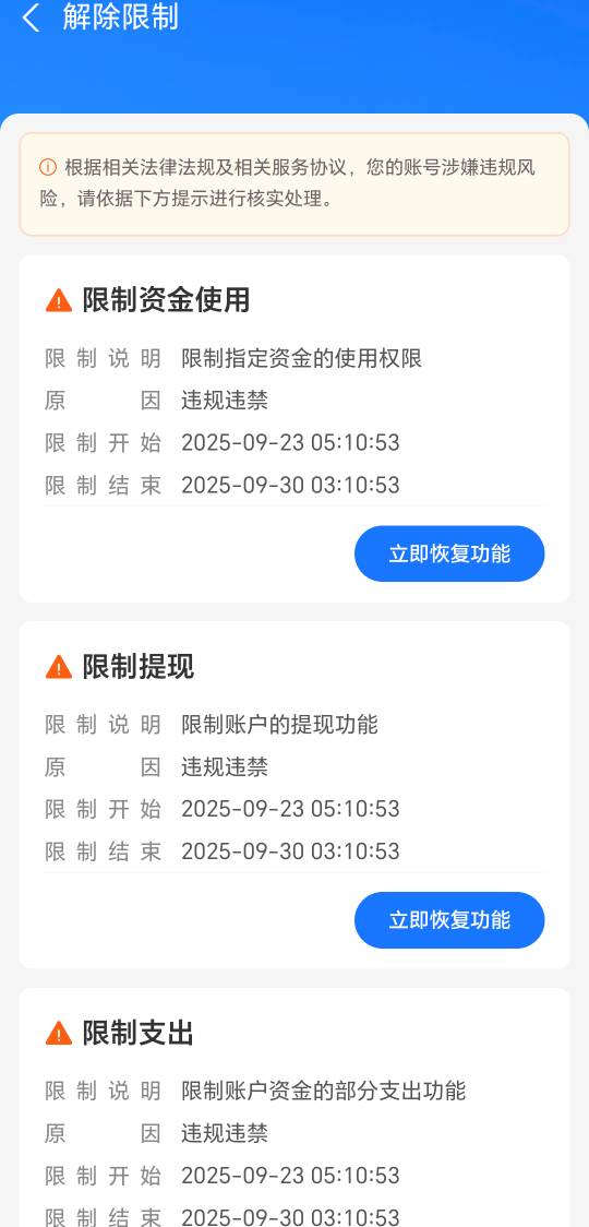 俯视天空 发表于 2025-09-25 15:03 我也限制了一星期,我申诉第三天解了