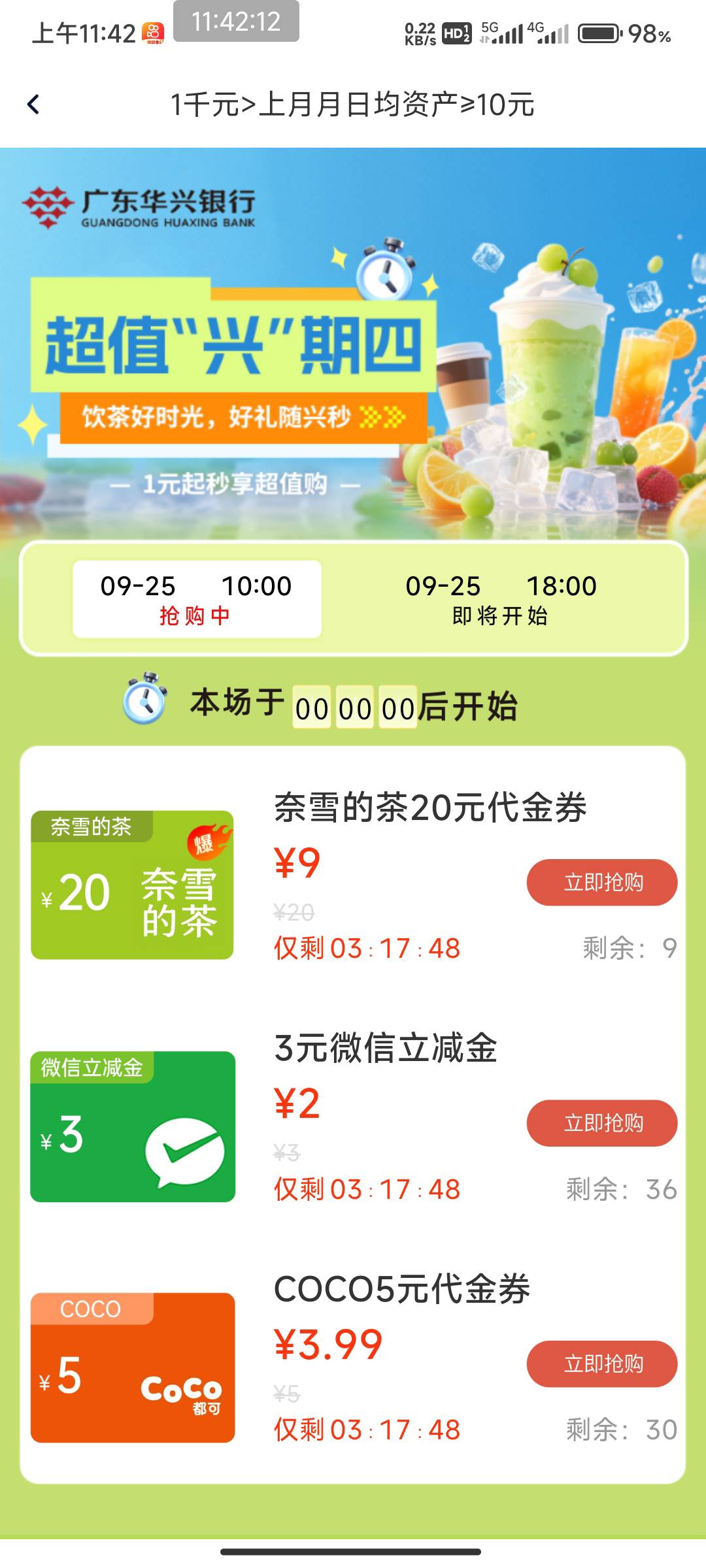 华兴周四3立减2元购润1元经营码小于5不用手续费。即最大4.99同实名不用手续费。