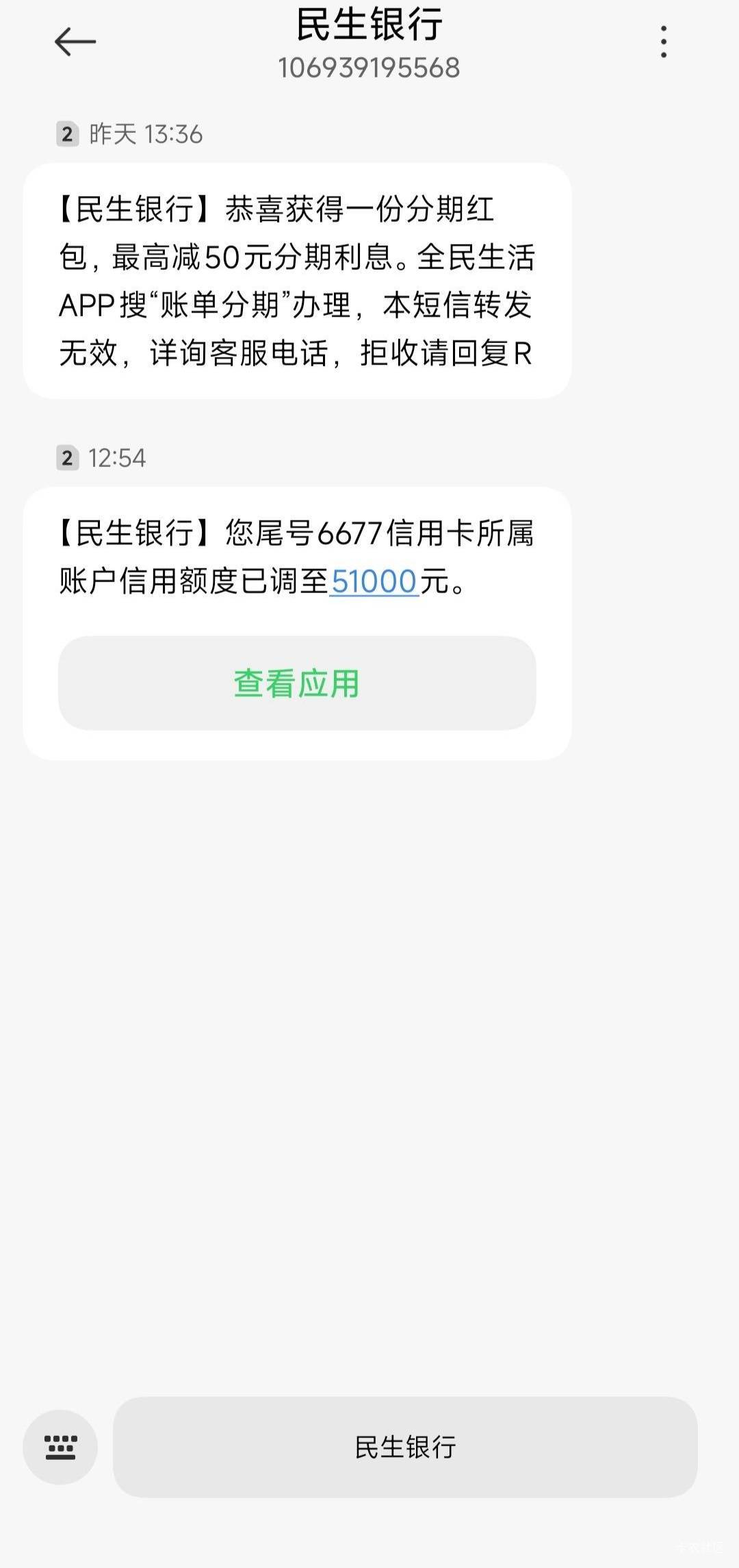 民生银行提升额度了,可惜提了三次额度才相当于别人新下卡的额度。