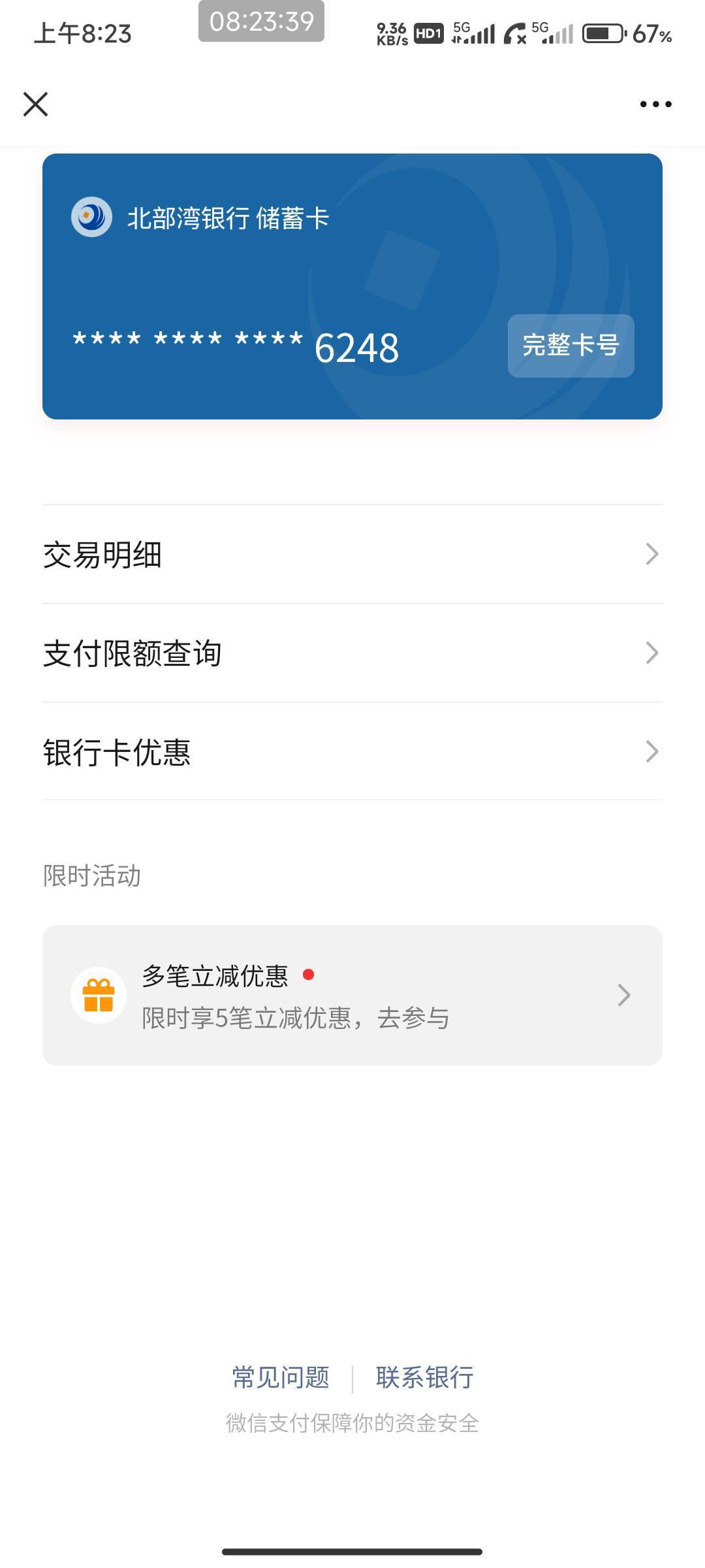 北部湾银行微信支付多笔立减活动