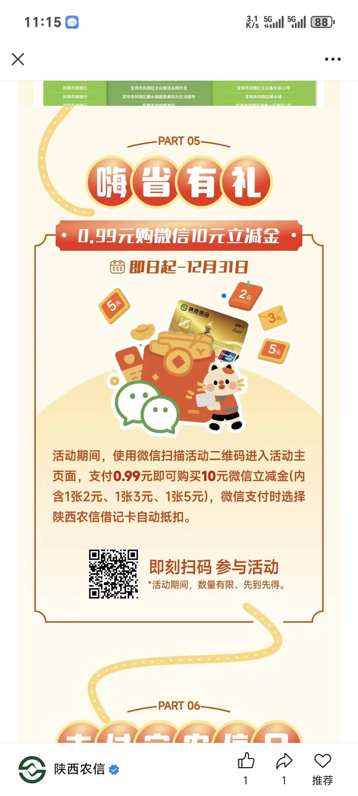 陕西信合每月 0.99购10