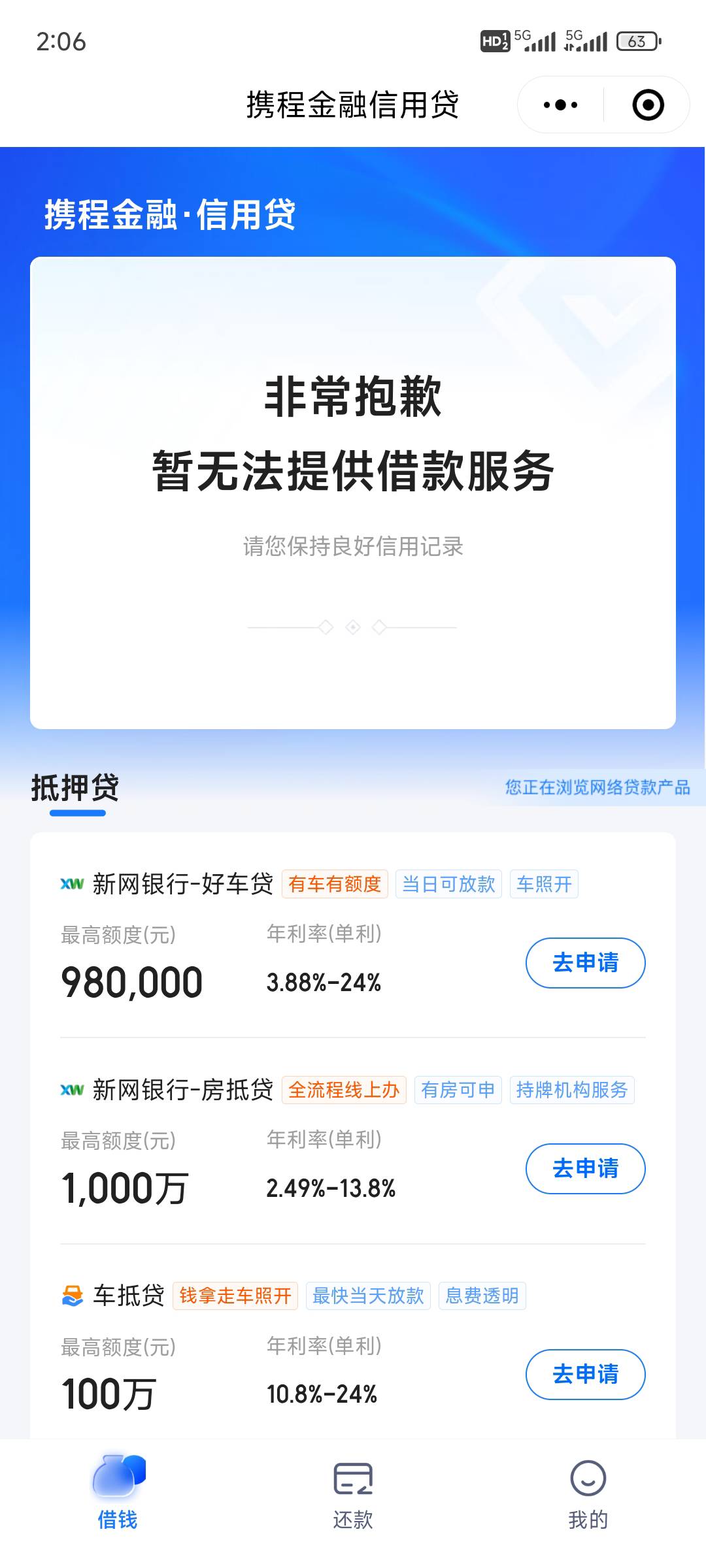 看花成啥样了,以前没携程额度好歹还推个第三方的民生助粒,,,现在第三方都不推了。
