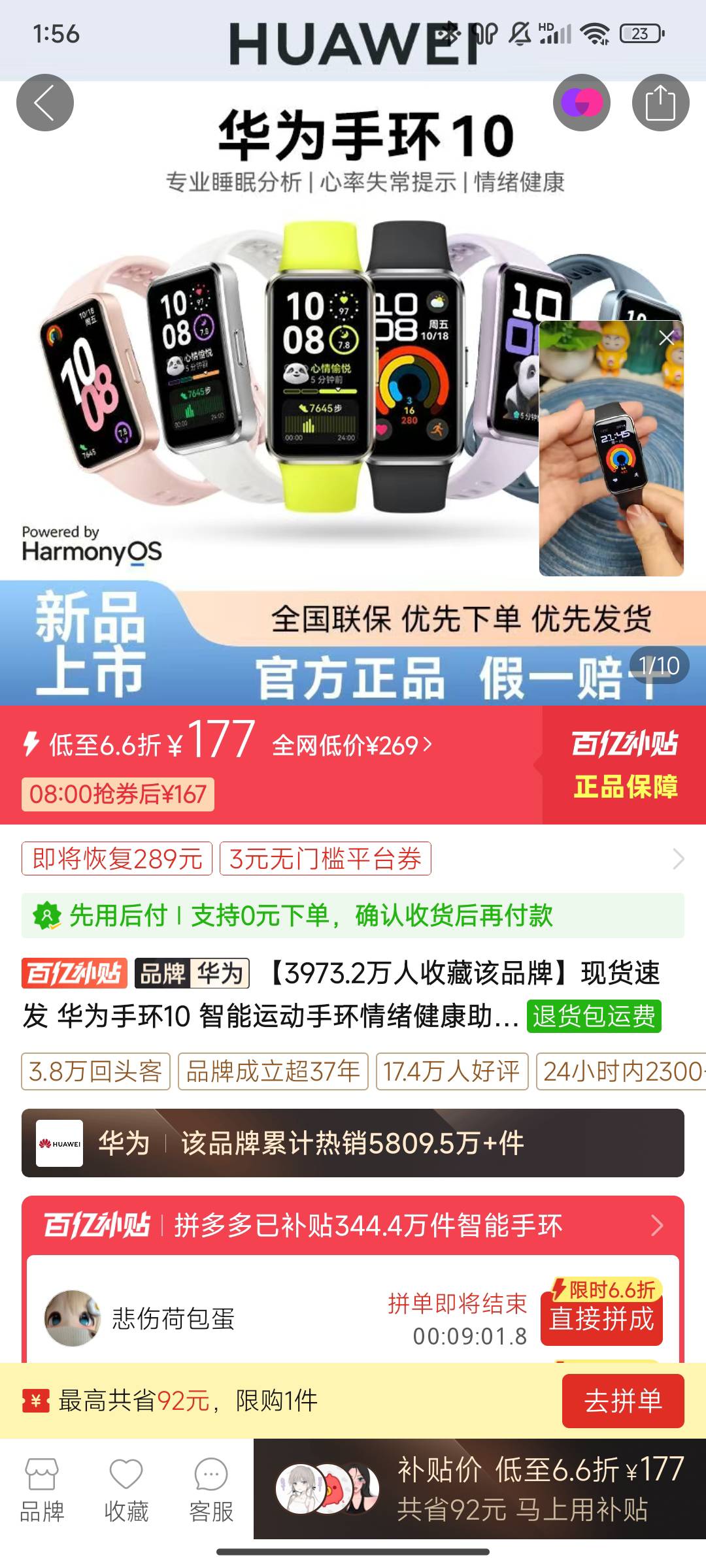 华为手环比小米手环还保值阿,拼多多买才177,一牛回收都175,下次应该都买华为手环好了