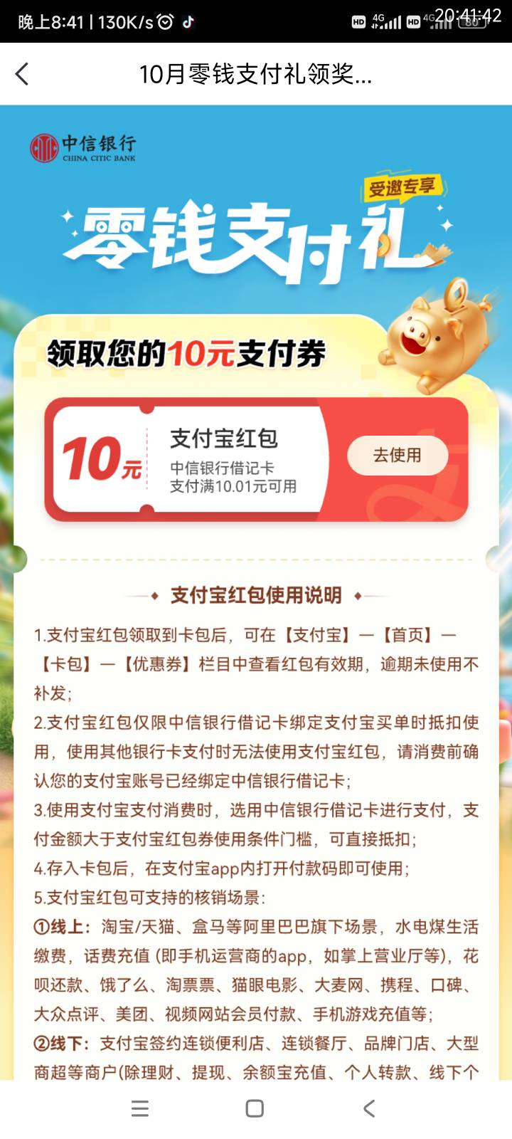 中信搜零钱,领10,特邀,有资格的需要等两天
