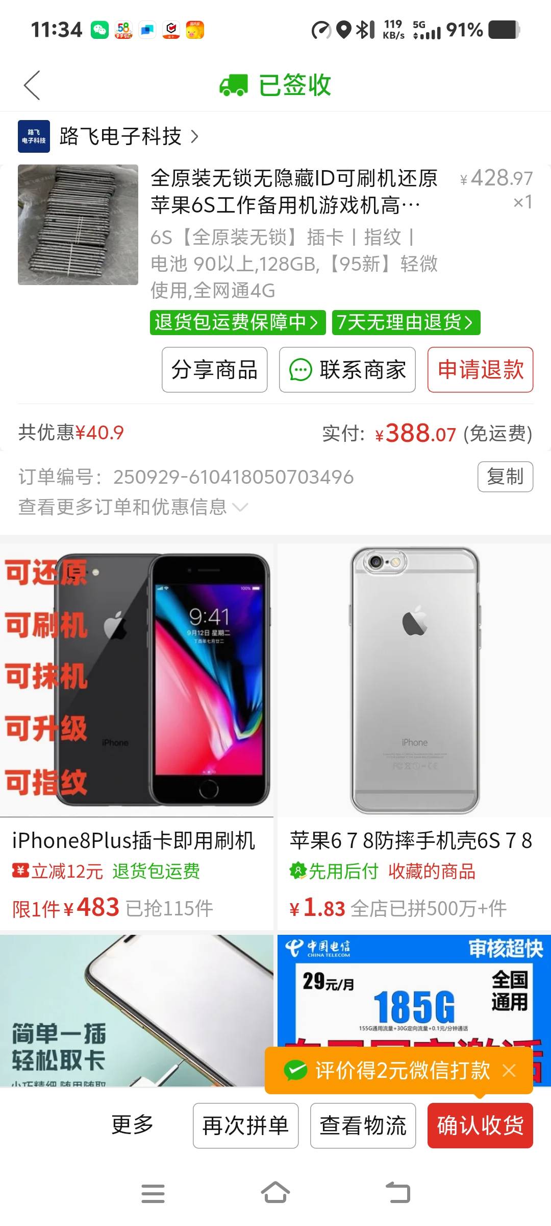 有没有老哥懂的,多多买的苹果6S,128G美版,390元,卖家说只换过第三方电池,其它全原。已经收到了,试用了一天除了有点卡,感觉还好,主要他这个无锁,无隐藏ID,随便还原升级,还能插卡,指纹也无问题,128G当个备用机无问题,话说这手机10年了。还能用,拍照什么的感觉比1000左右的安卓手机还牛b,让老哥们见笑了。