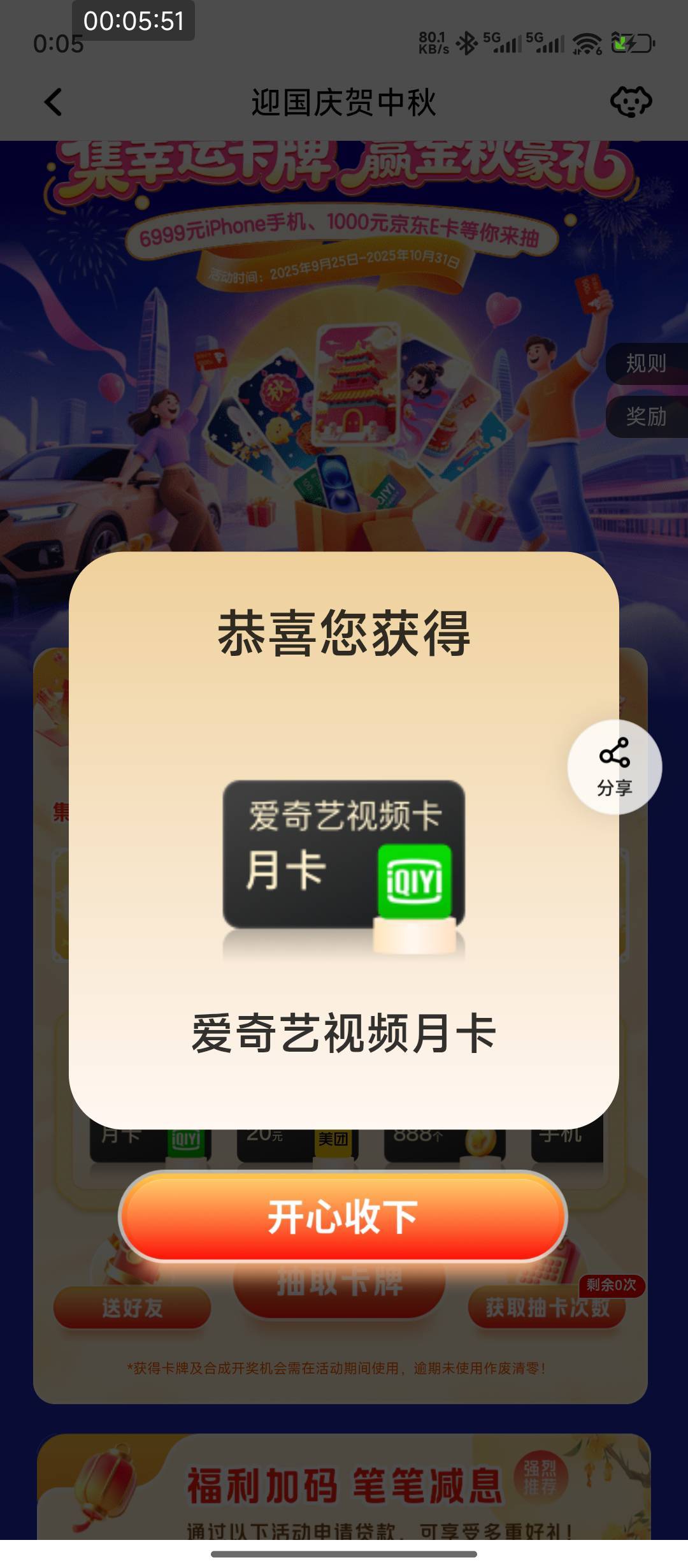 平安终于集完卡,中了个爱奇艺