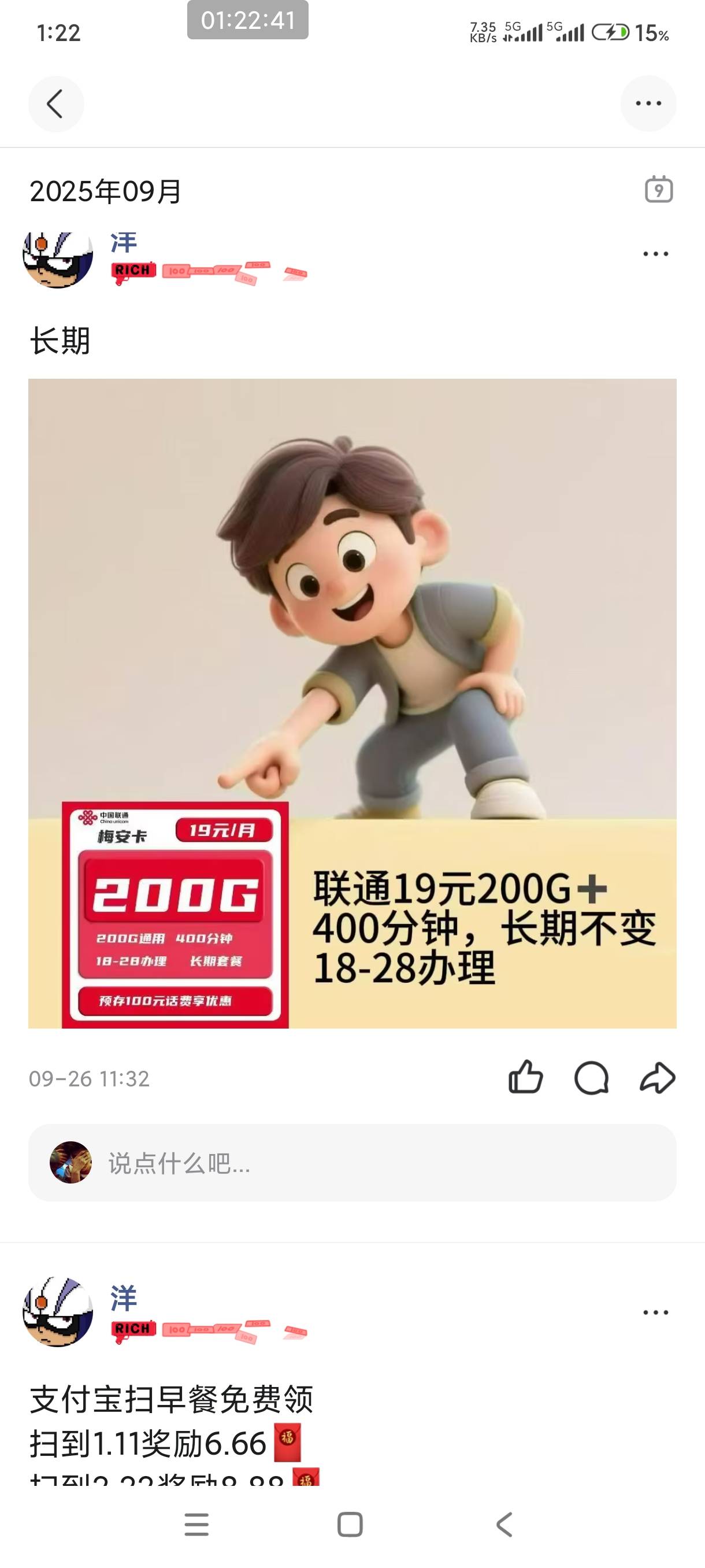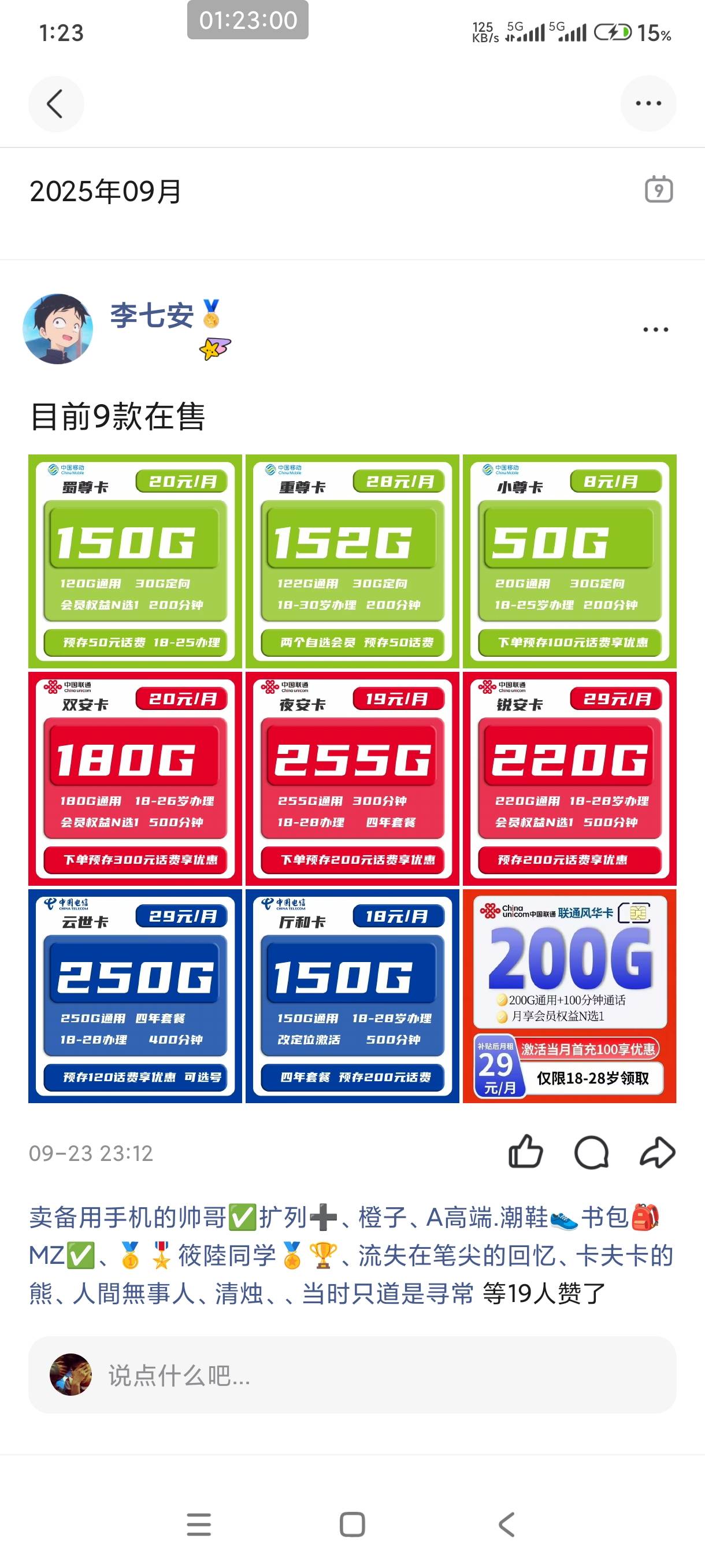 拾念卟执念 发表于 2025-10-05 01:41 172 号易谁没有啊,自己拿佣金,老哥都懒得发,现在就有一个长期T餐29元300g加300分钟的