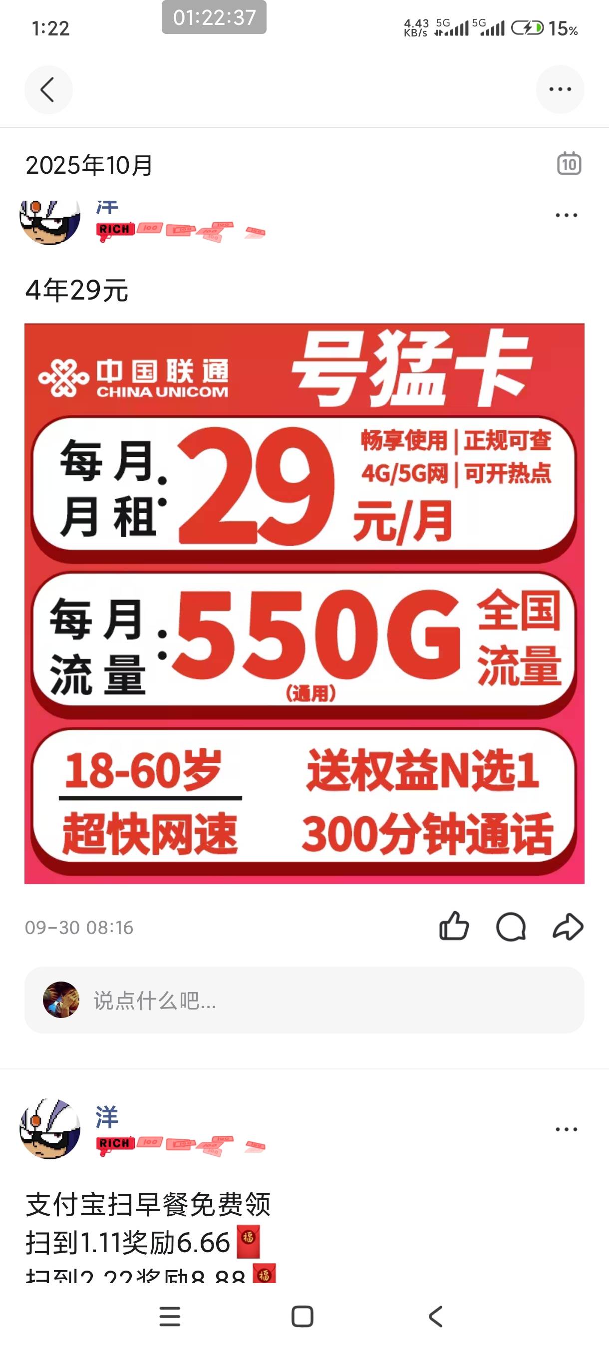 北纬深沉 发表于 2025-10-05 01:30 费卡罢了,我这39每个月300g.用不完可以叠加下个月,永久,1g速率你拿什么比