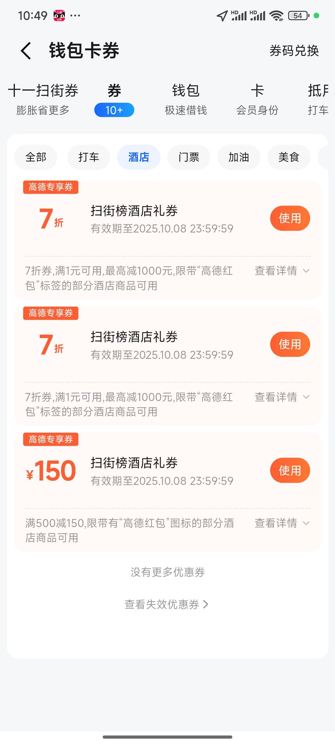 我昨天换绑了个号。两张300-100加油劵一个7折酒店。才30。现在还没出手呢