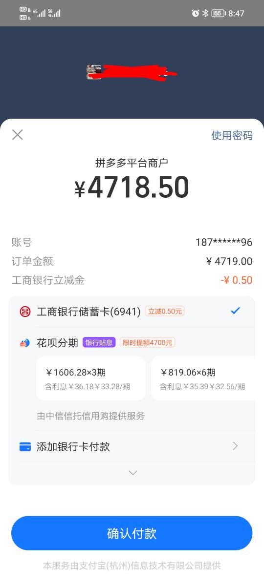 接上贴,去拼多多随便点个东西,我点了个4000多的手机,能测花呗的隐藏额度