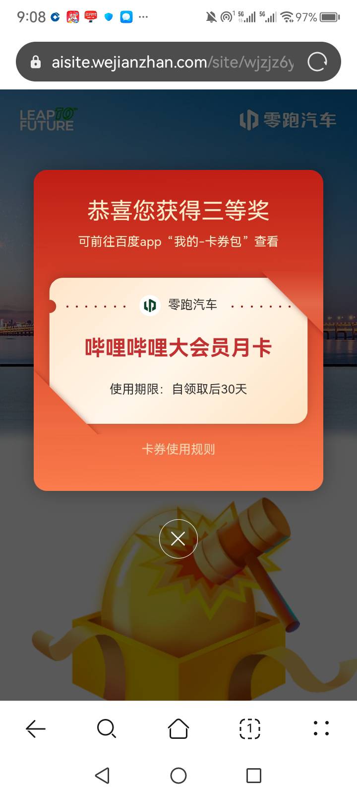 零跑汽车抽中一个