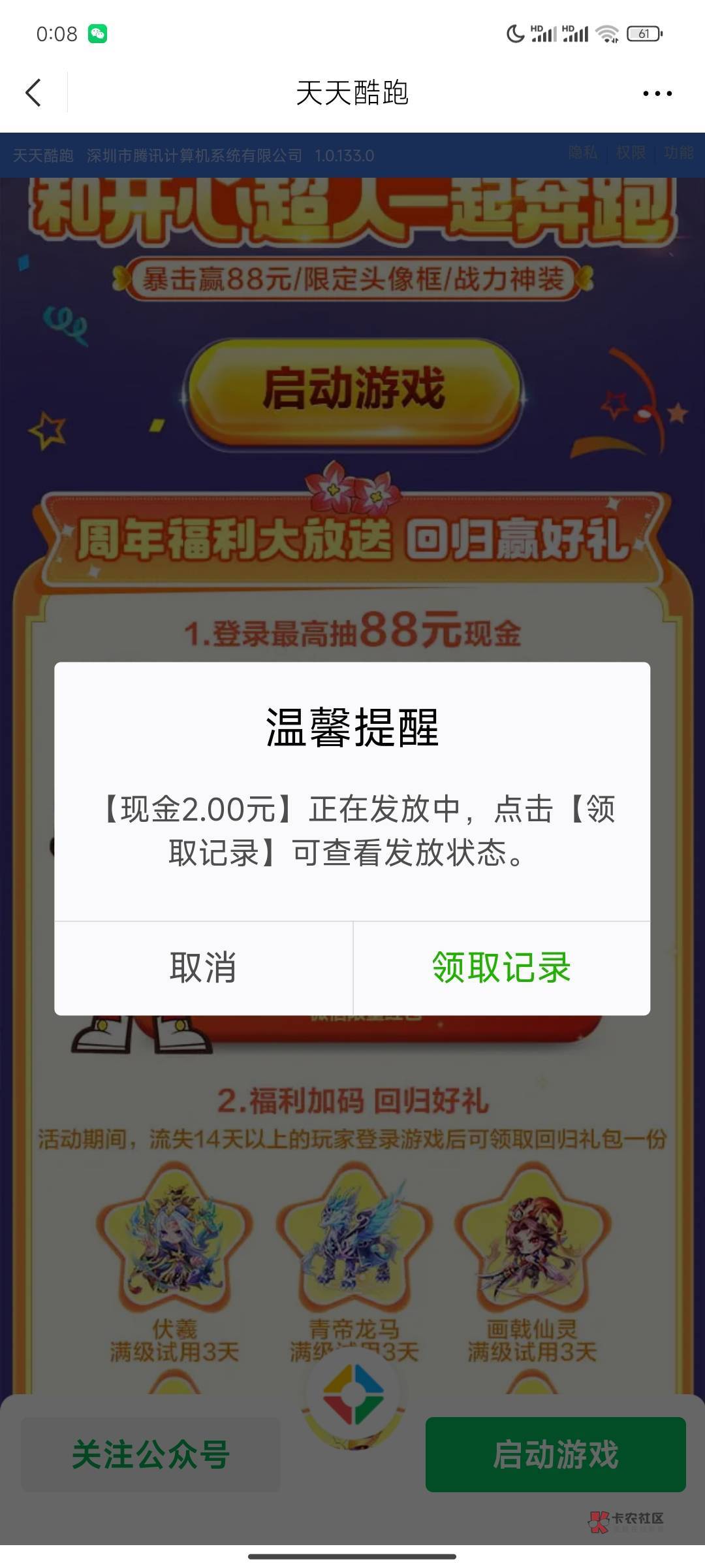 天天酷跑10.1号回归,没领到的还有,每天凌晨都补 https://game.weixin.qq.com/cgi-bi