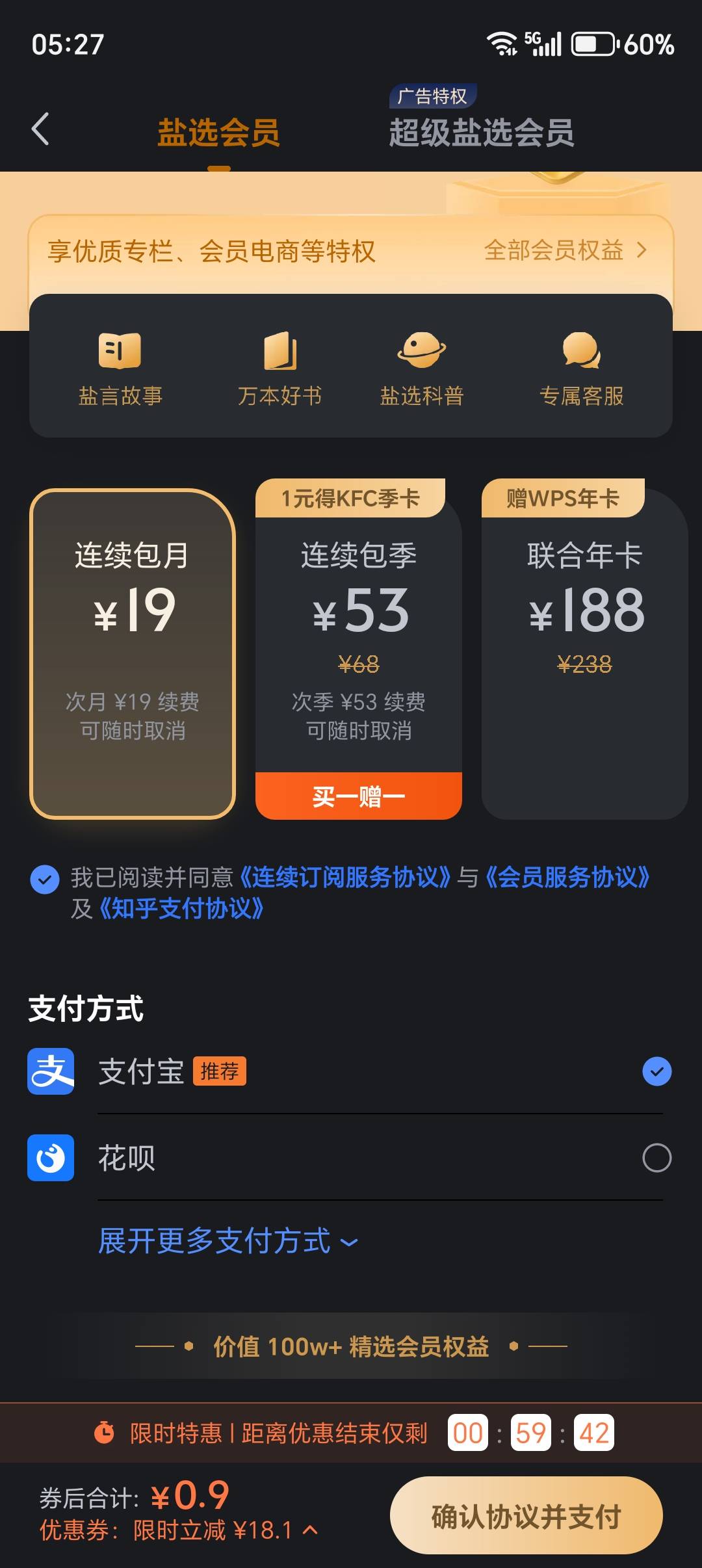 知乎盐选会员都不值钱,咋卖出去的?外面的订购都显示零元购了