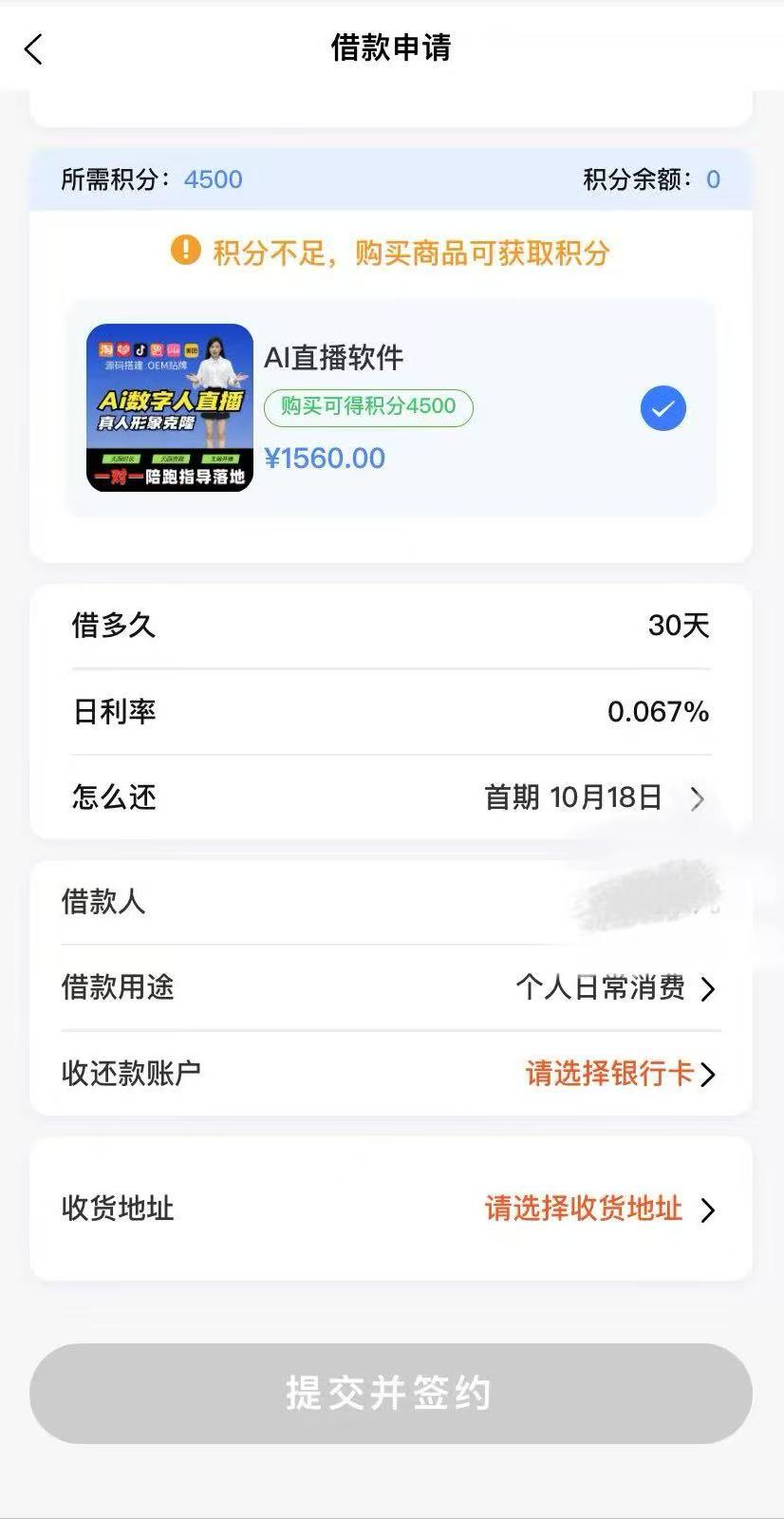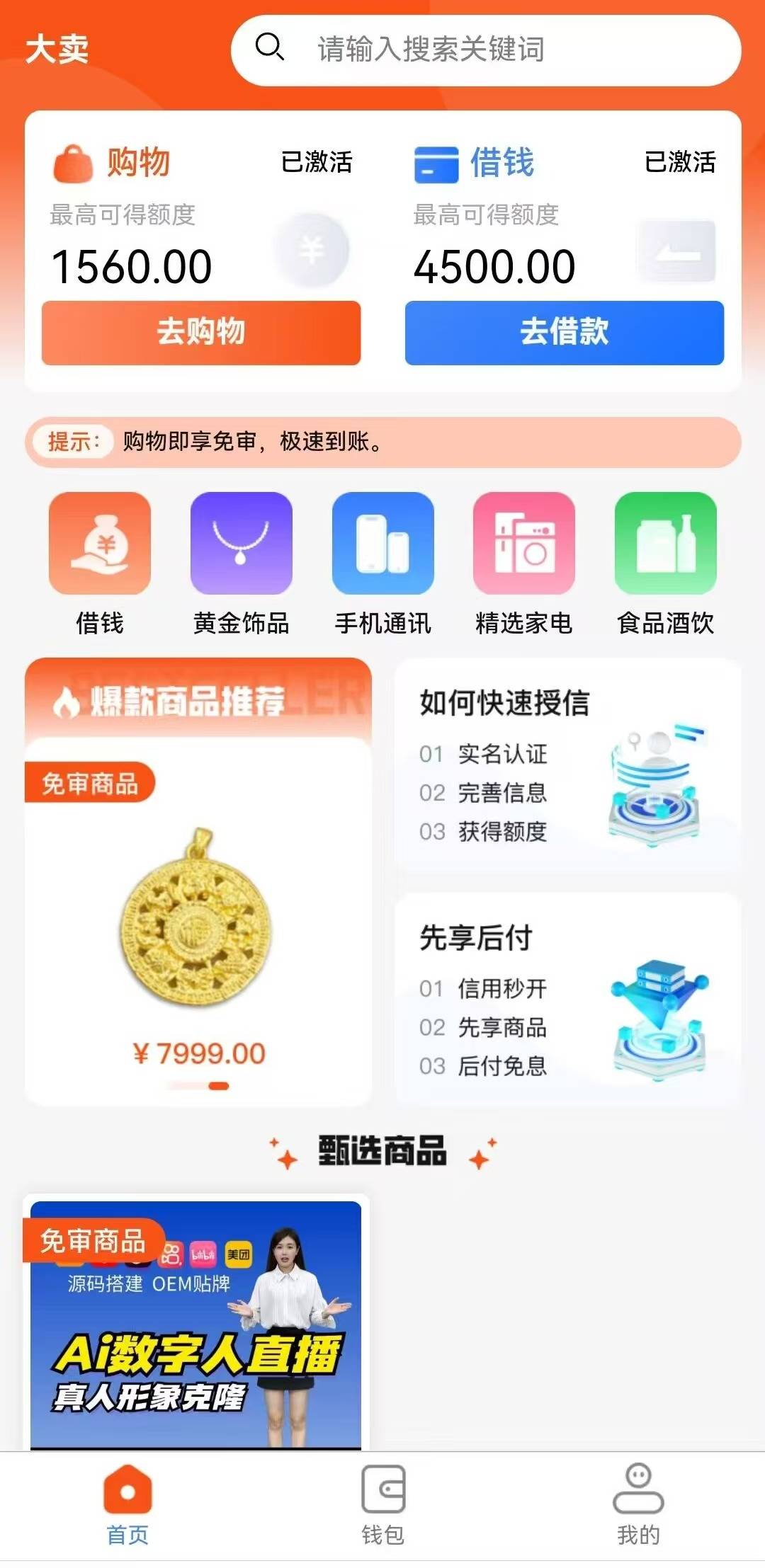 大卖出了购物额度即可现金借款,没有出购物额度说明拒绝! 现金额度借款下单勾选1560T