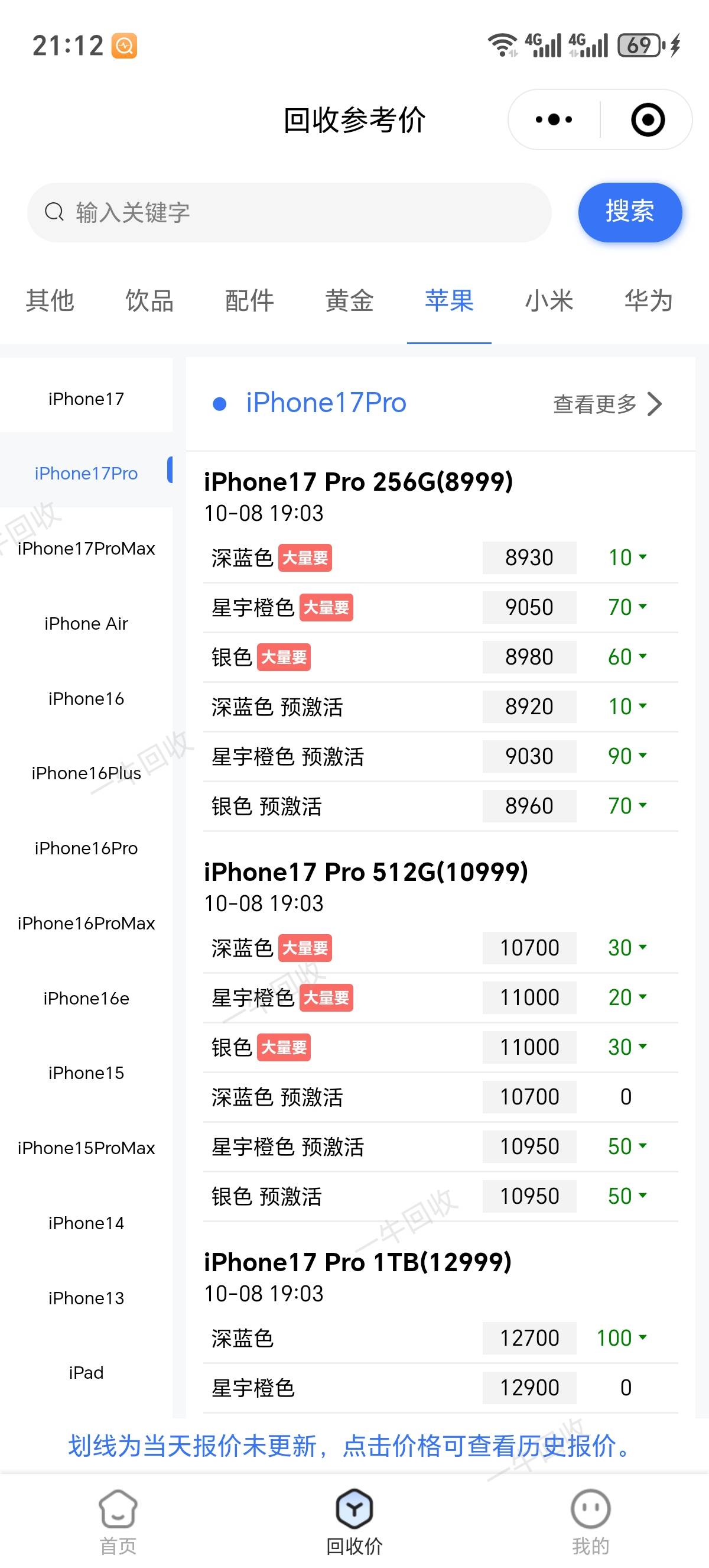 全新苹果17pro256g橙色现在回收价格多少?抖音商城买的