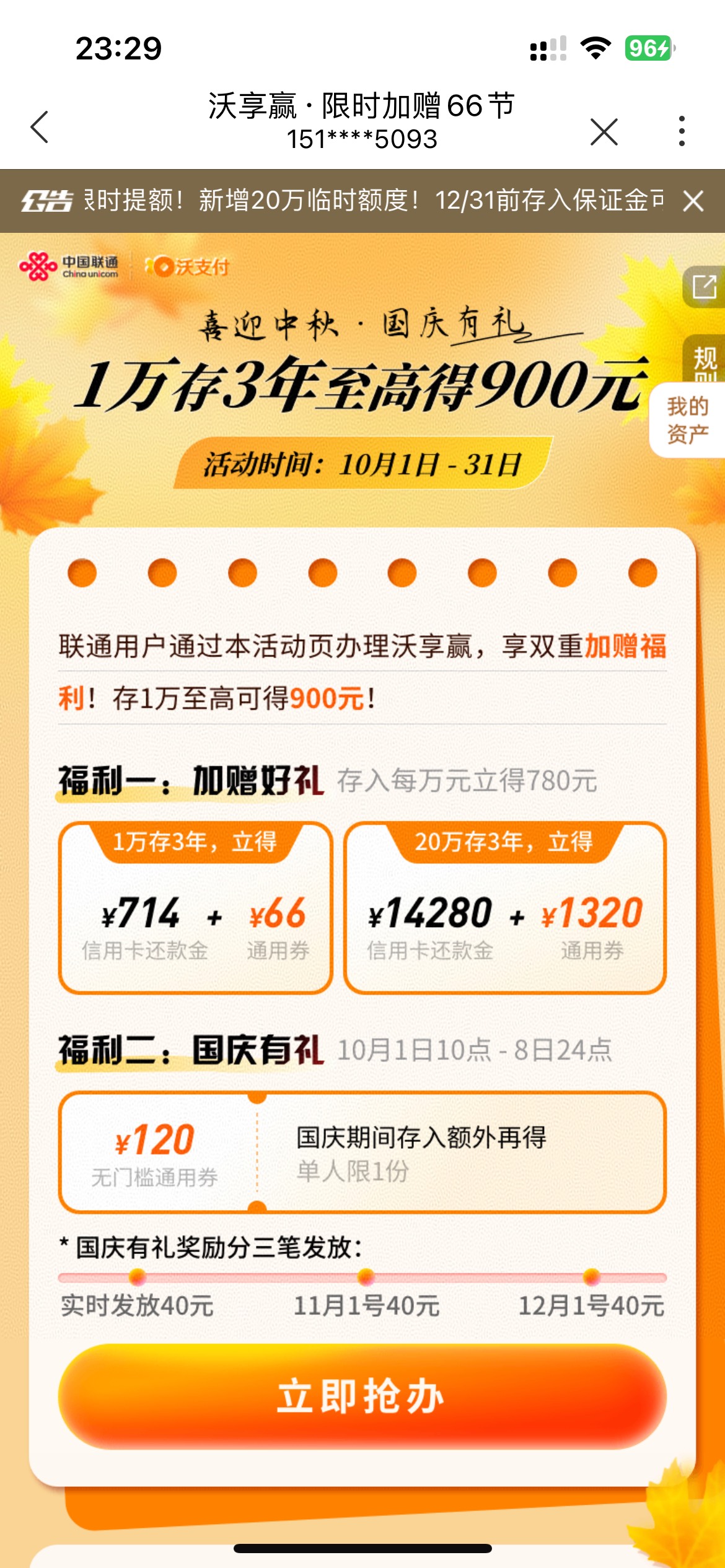联通这活动需要联通号码才行 没有联通号 错失900毛