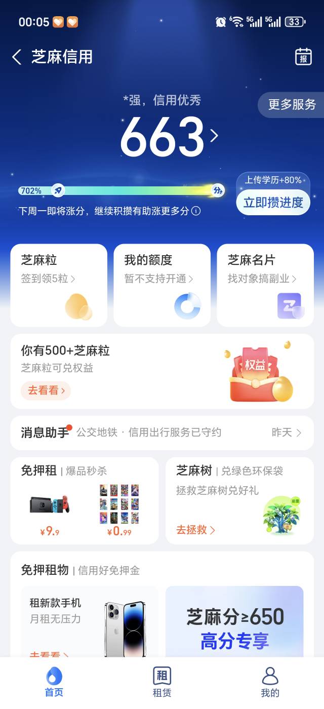 做任务涨进度,进度702,涨芝麻分