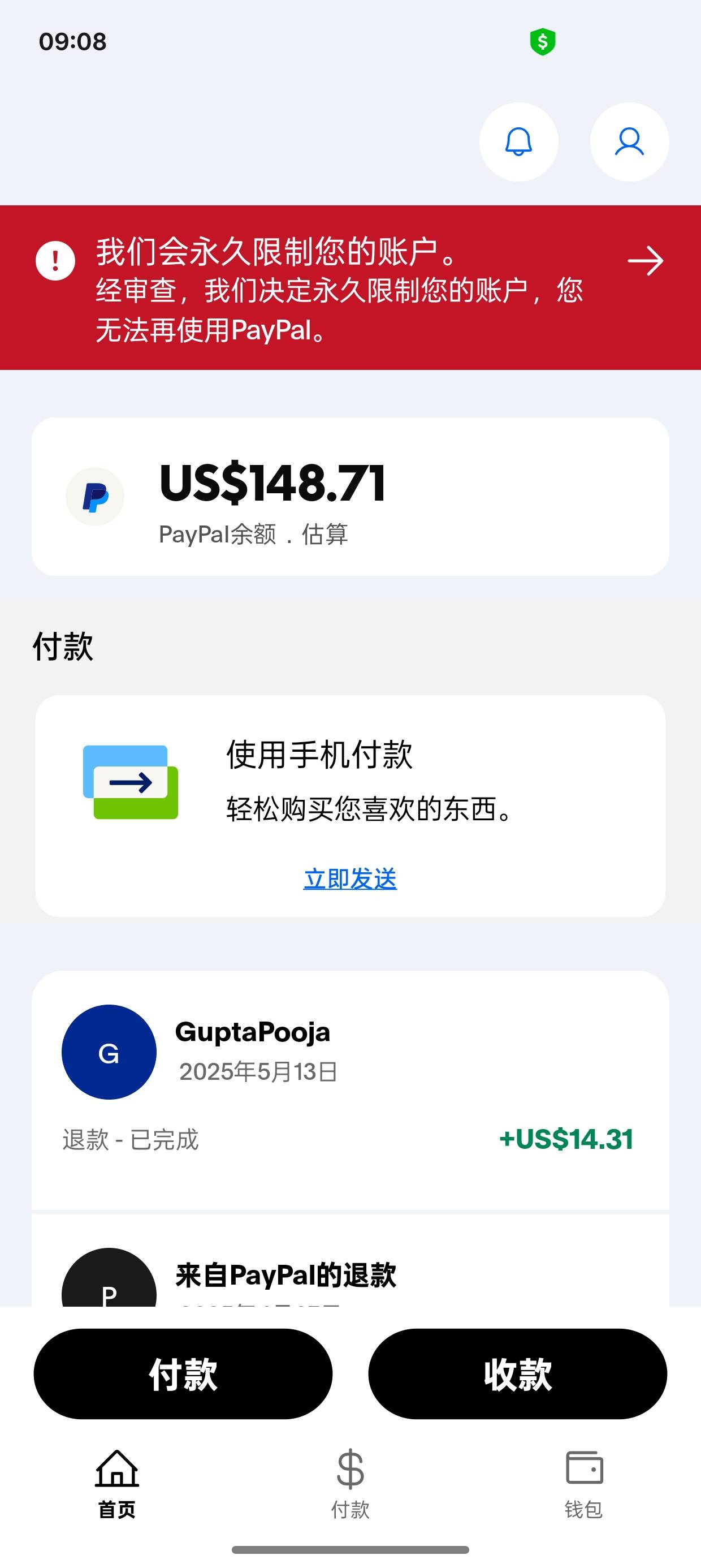 papay被盗。这玩意我邮箱有消息我以为假的呢。刚上号一看多了148美元。然后还退款了600多美元