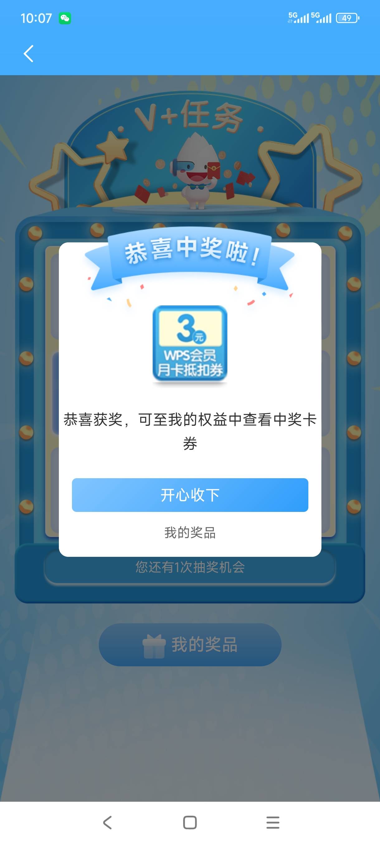 民生银行app,v+简单浏览任务,刚中两张腾讯半年卡