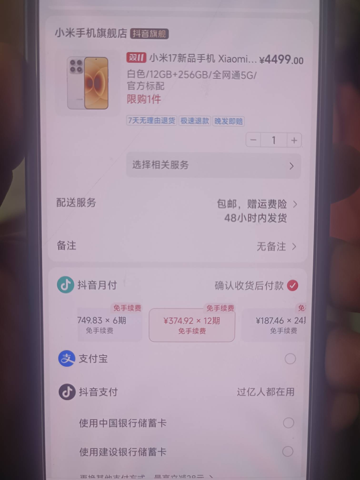 老哥们小米17付款的时候出现月付了,能卡成功吗?