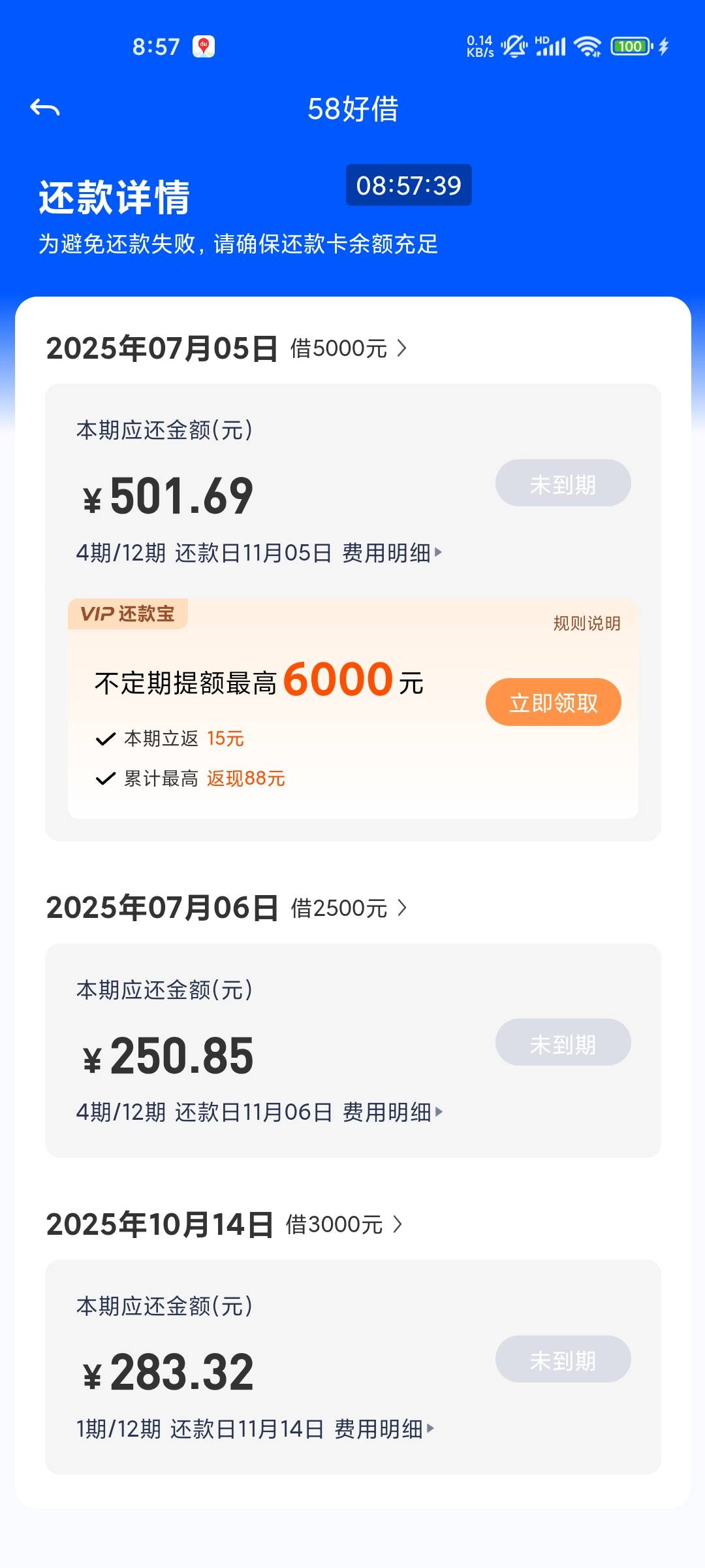 58还清1000后开通了提升额度宝提升额度1500然后额度变3000,刚刚申请3000又下来了,开