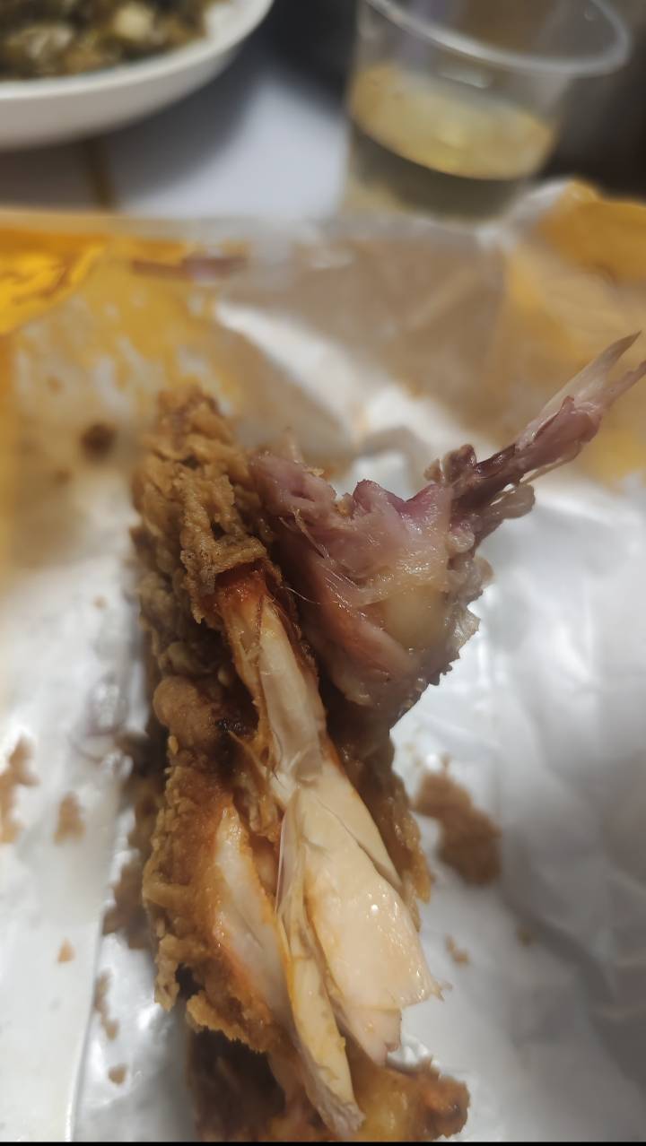 美团点的炸鸡 吃的满嘴流油 老香了 吃到一半发现不对劲