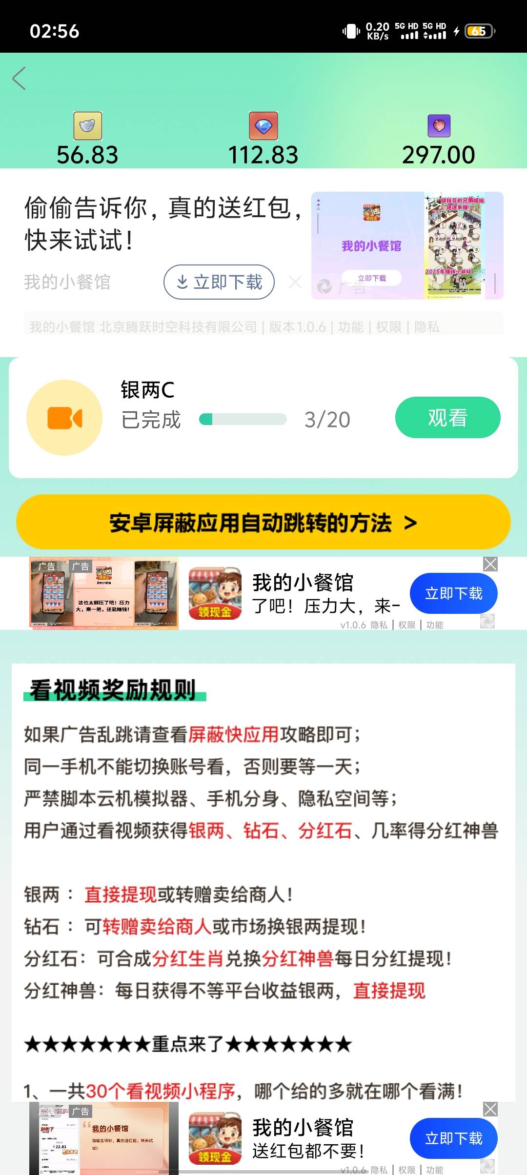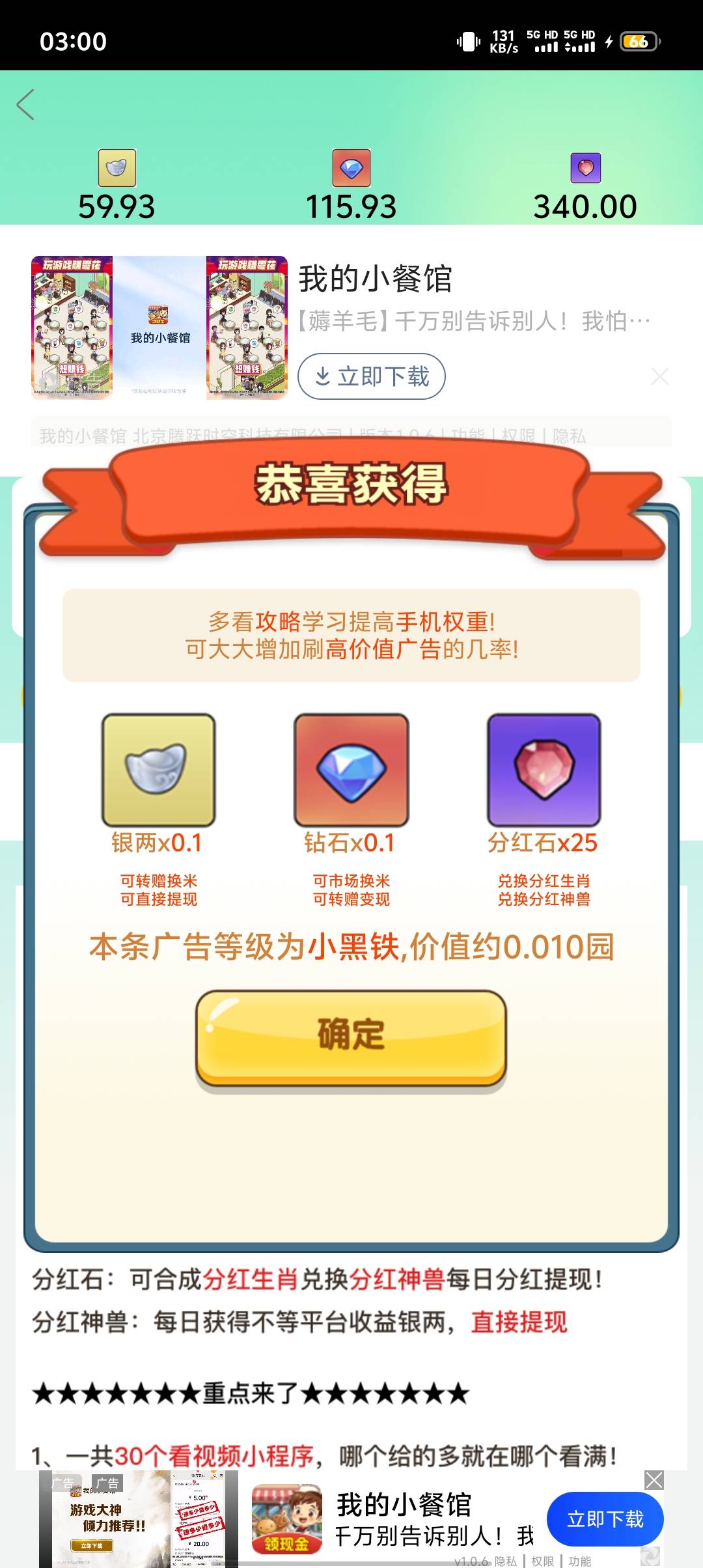 细狗行不行 发表于 2025-10-16 02:59 我20个广告才150钻石