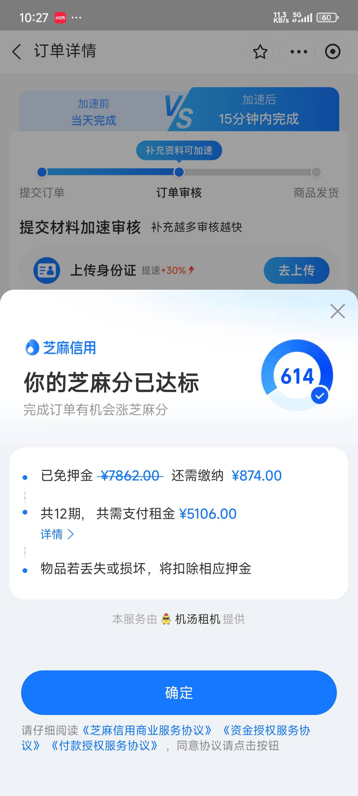 请问大家这种是免押成功不,是交800就可以审核还是另外在交钱呀