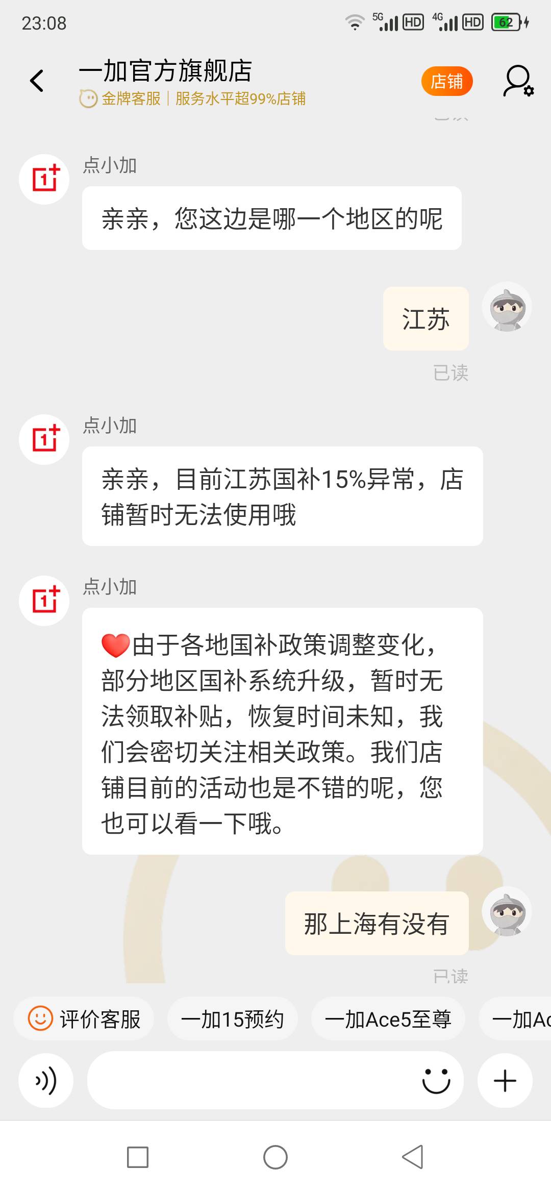 绝望在江苏,手机国补都没有。现在这帮卖手机的都把国补当成他们自己的优惠券搞笑。应该全部取消这钱还是优惠不到我们手里