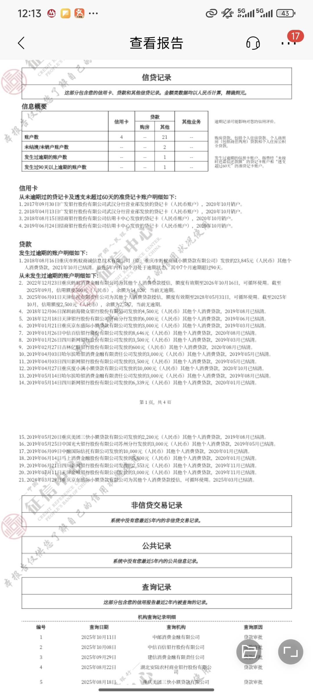 华尔街之虫 发表于 2025-10-18 12:17 彩色是之前的,征信逾期消了,怎么还有一个呢?要什么时候