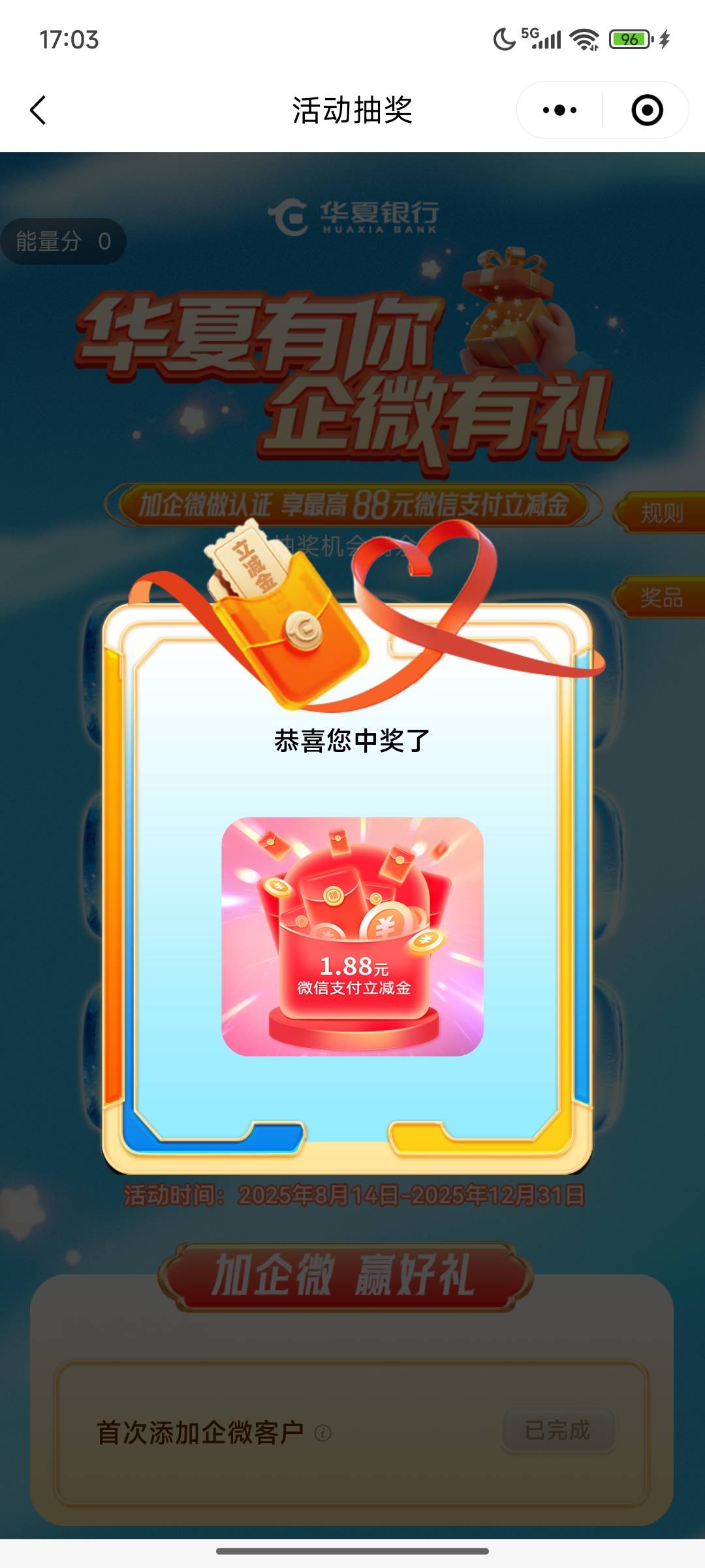 H夏银行企微认证享好礼