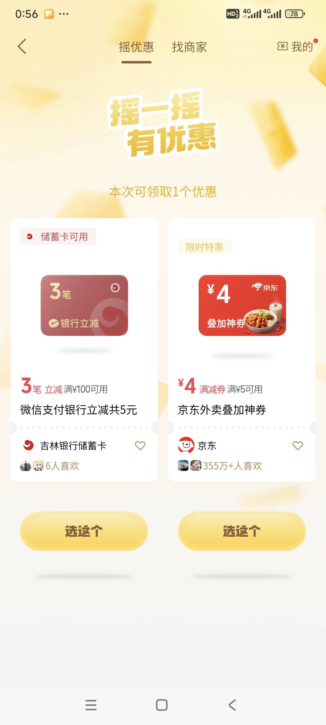 微信支付摇一摇,吉林银行5毛