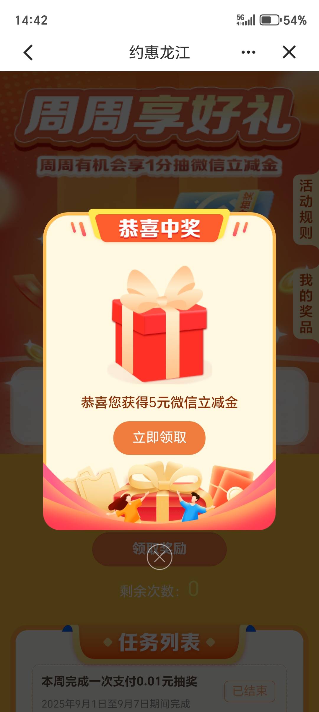 建行约惠龙江周周享好礼抽微信立减金活动