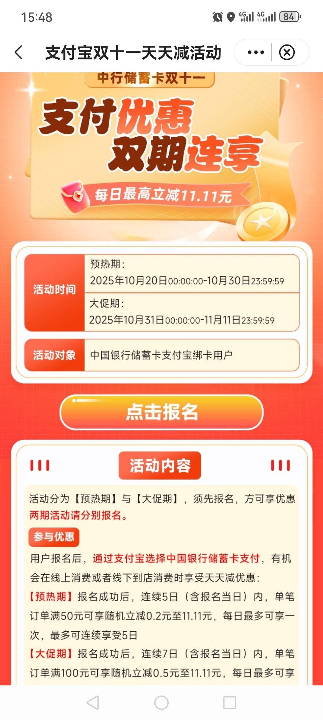 中国银行双11过来了。最高11.11可以互