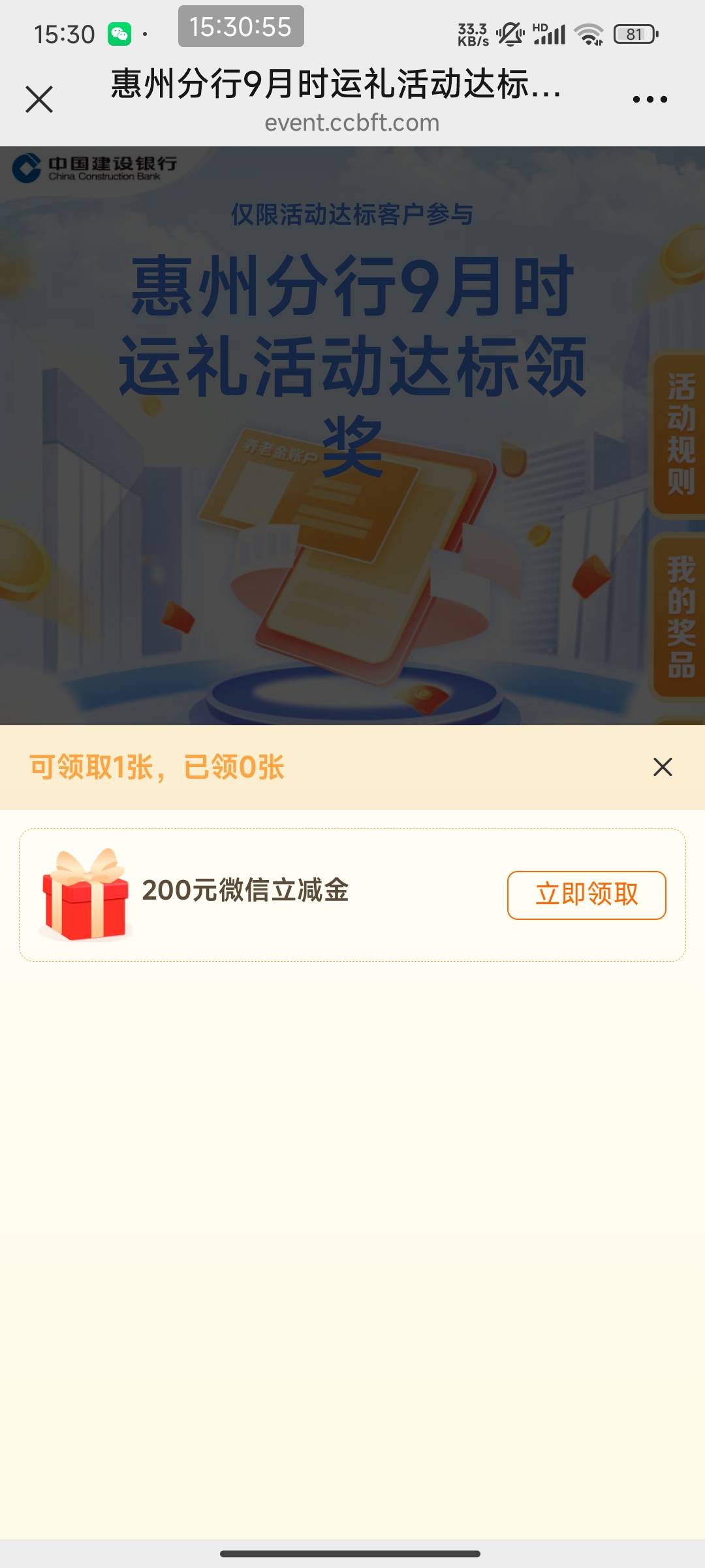 建行惠州分行9月时运礼达标领奖活动