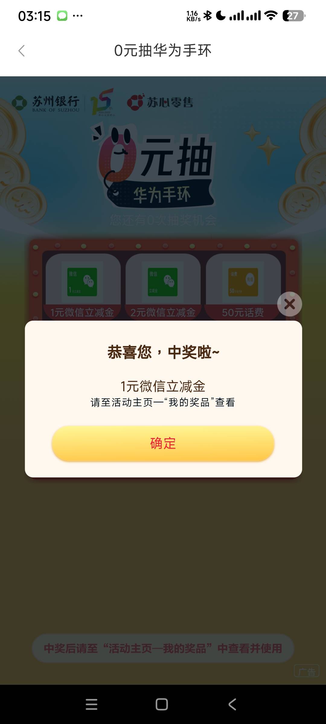 苏州银行主页横幅0元抽华为手环
