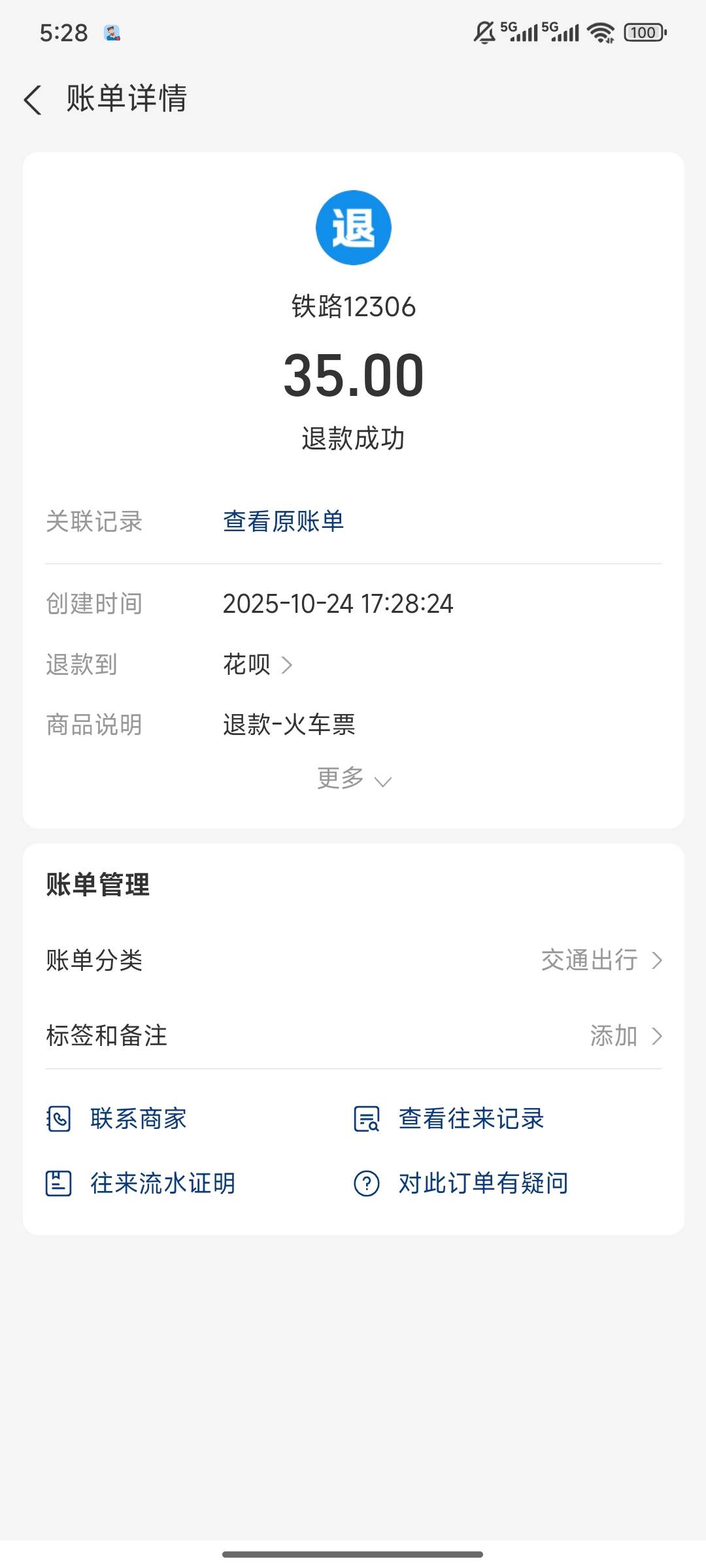 谁说的,花呗买火车票退款到余额的,我服了