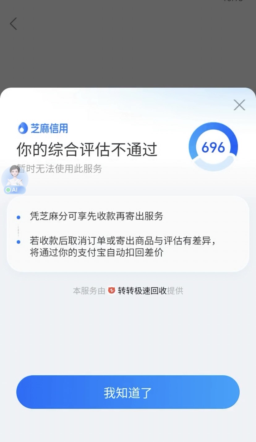 转转有入口,芝麻分696都过不了
