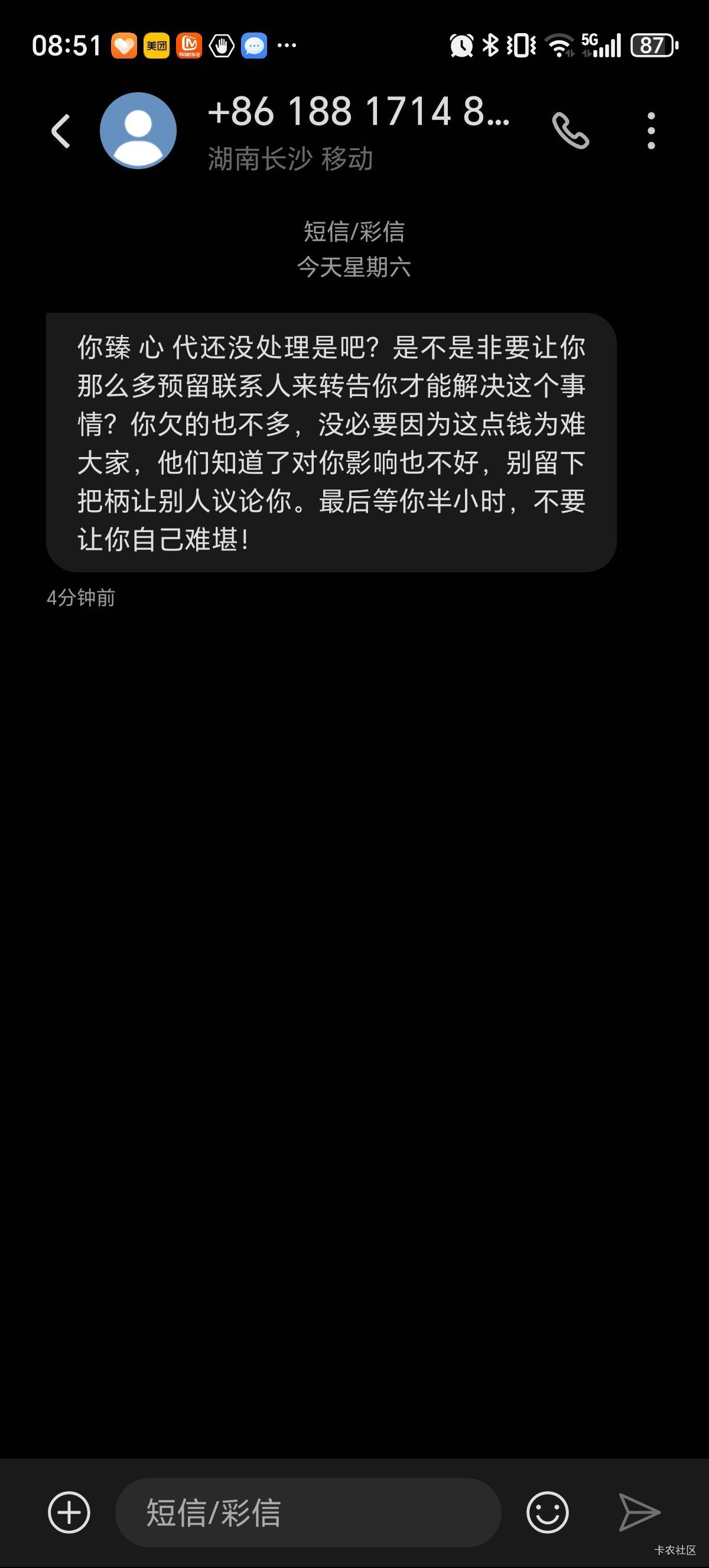 你就回复他不爆通讯录有钱了就还,爆通讯录以后一毛都没有,怕个蛋