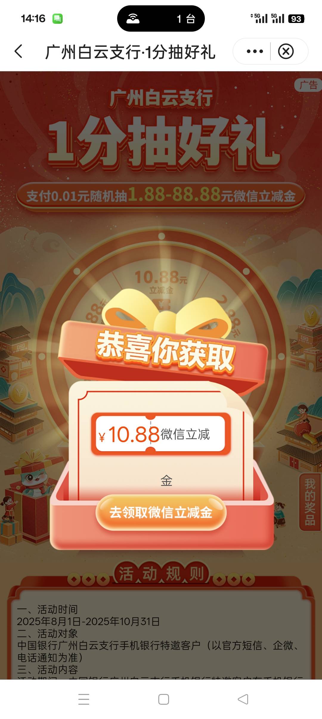 枸杞人参酒 发表于 2025-10-25 14:31 没开卡啊,你没看到我是广州白云我是广州卡