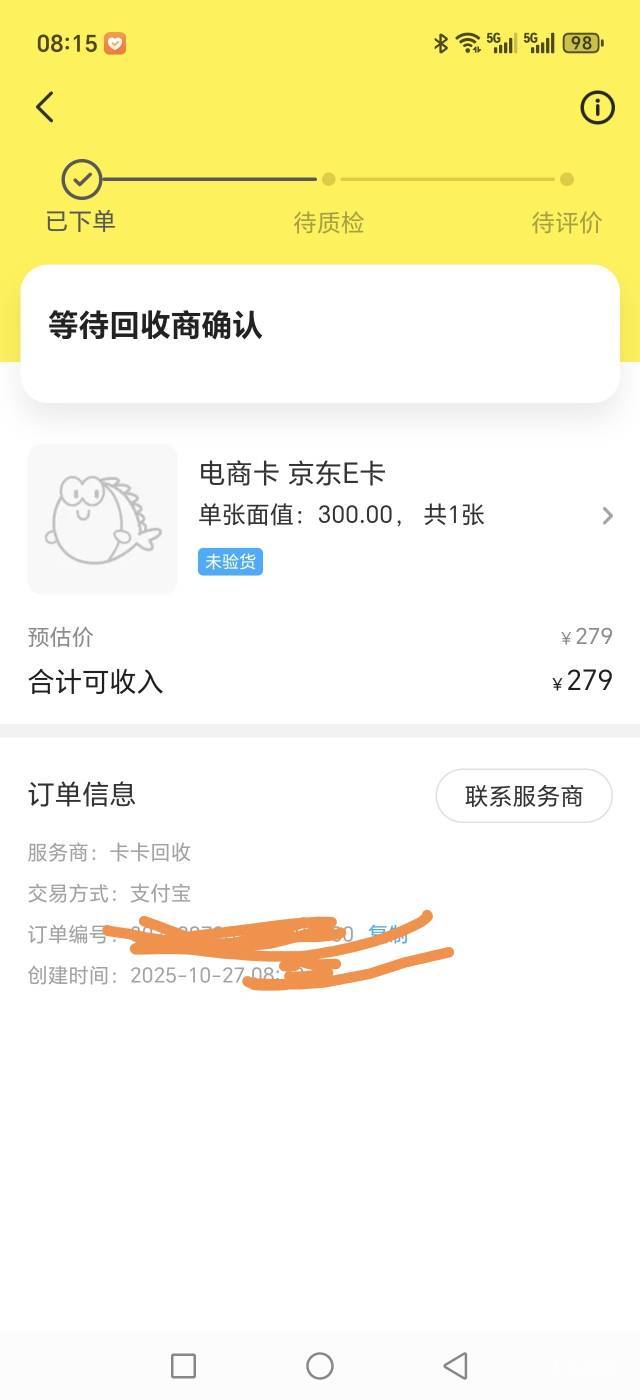 希望明天能更好a 发表于 2025-10-27 10:16 撤不了单,赶紧挂别的回收出了吧,不然闲鱼把你的e卡核销完还要等几天才结账
