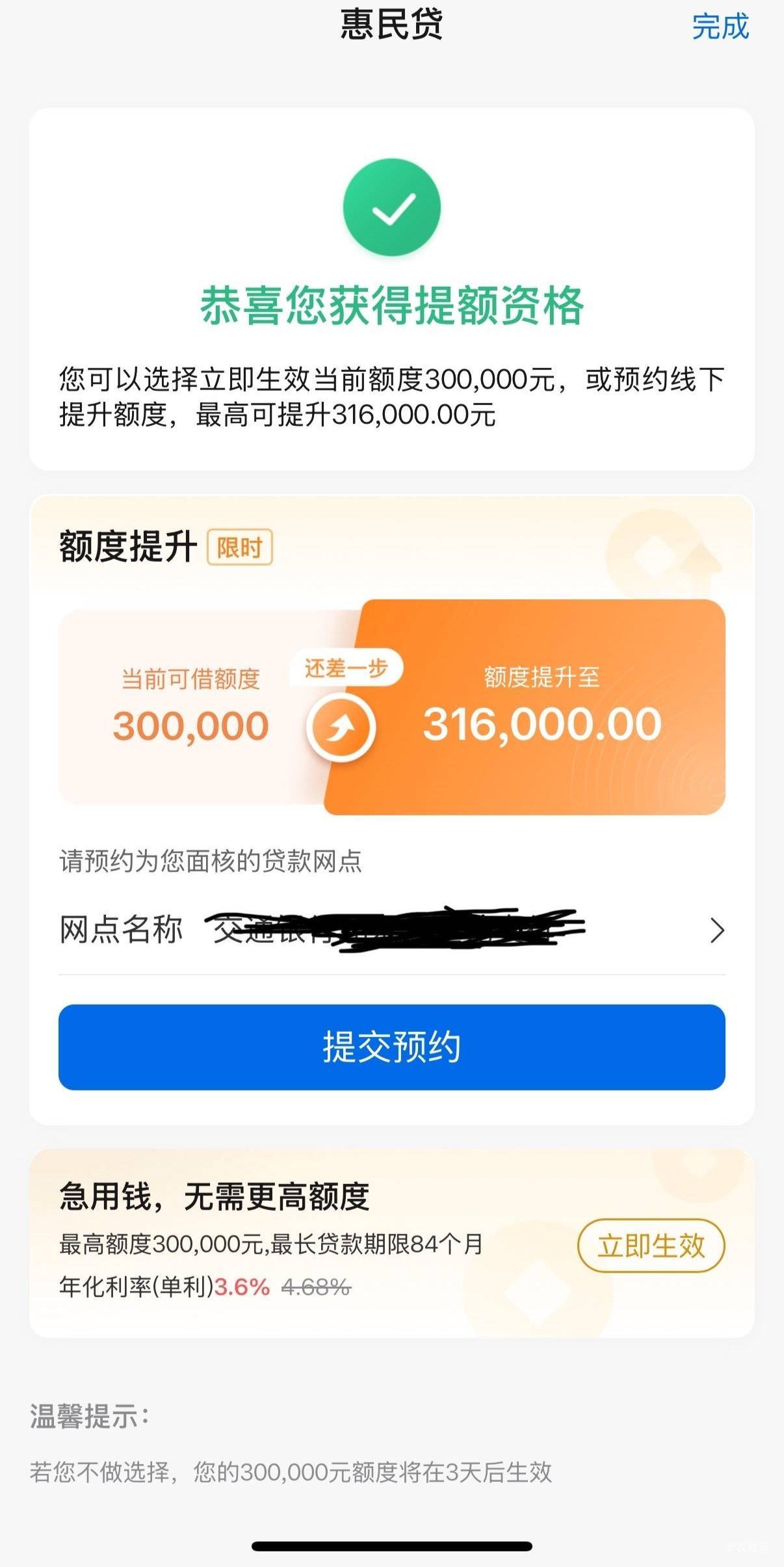 惠民贷提升额度了,先买单吧点的卡提升额度,直接不符合。又去交行 app 点的惠民提升额度,之前的 19 个全都用了,提到 30 了。