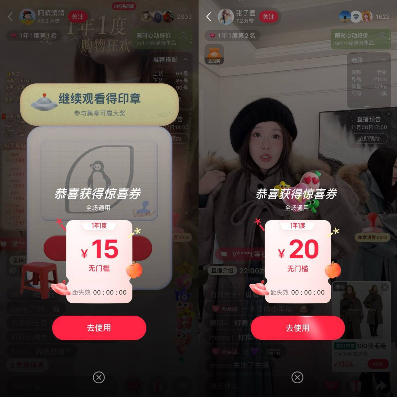 小红书搜:一年一度 点横幅.立即参加.去看zbj 部分号 自动弹10~20无门槛