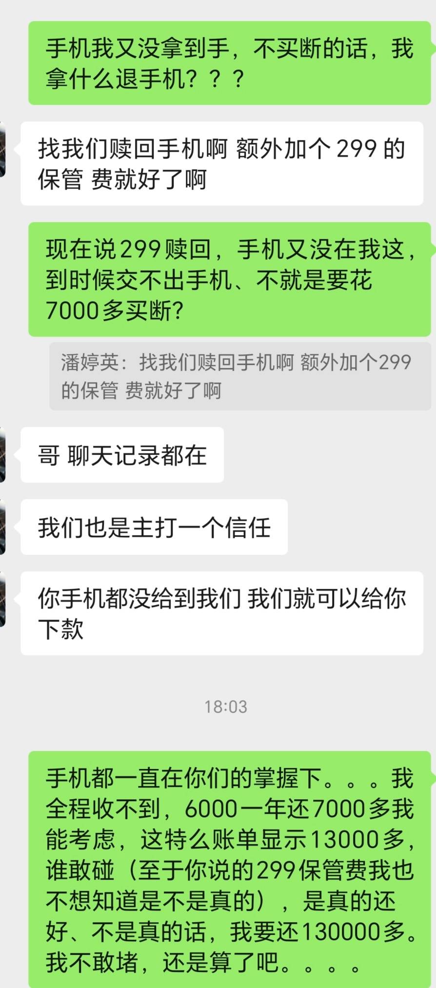 一梦方日出 发表于 2025-10-30 18:16 你两台价值多少,总共还了多少。他后面又跟我说一年后299保管费可以赎回手机,我感觉是骗人的。